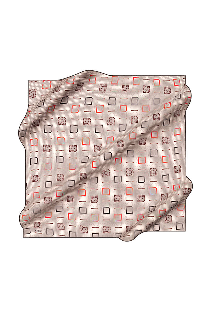 Geometrik Desenli 90X90 İpek Krep Saten Eşarp
