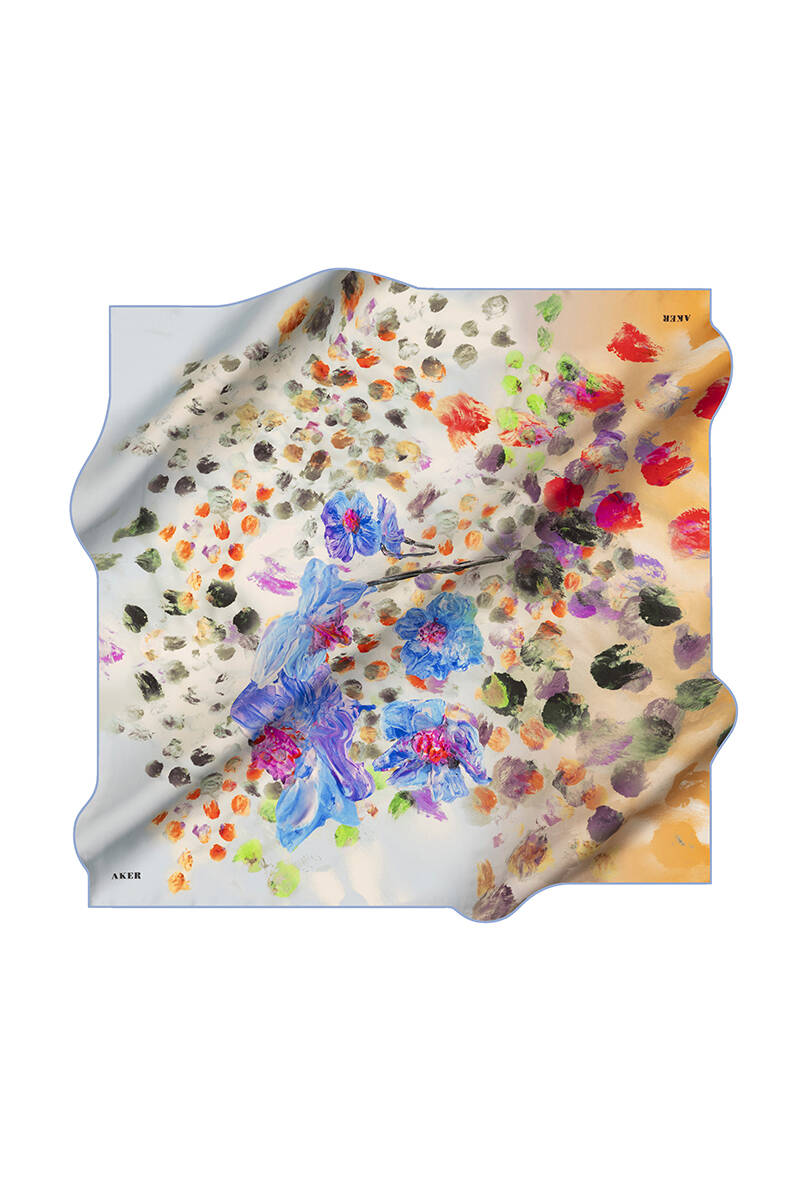 Çiçek Desenli 90X90 İpek Krep Saten Eşarp