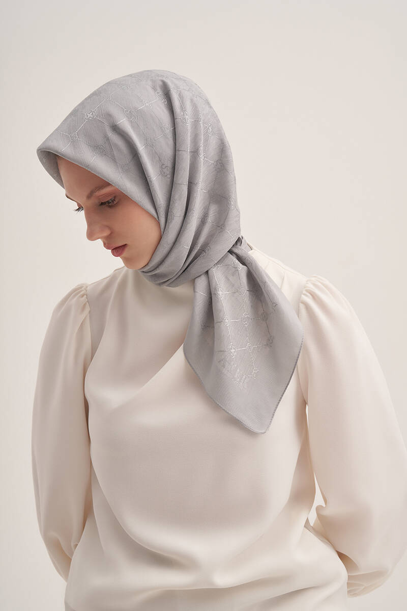 Geometrik Desenli Aker İpek Krep Saten Eşarp
