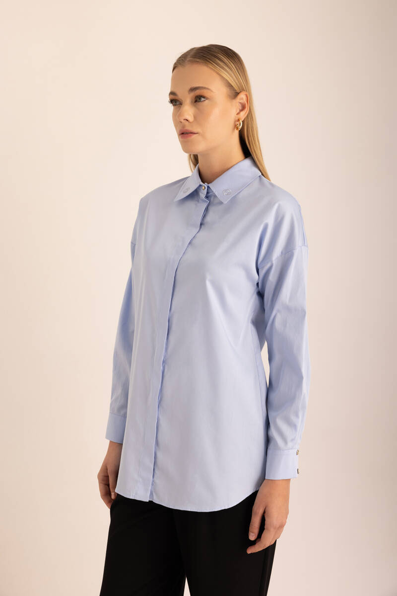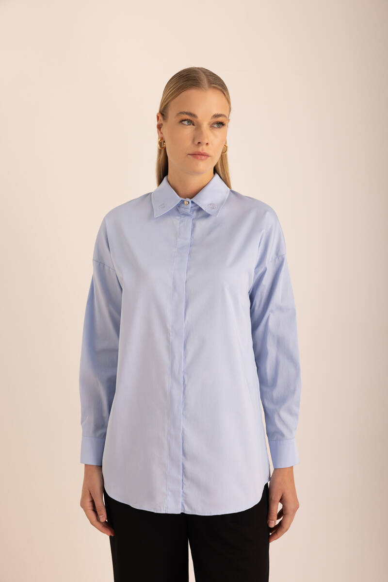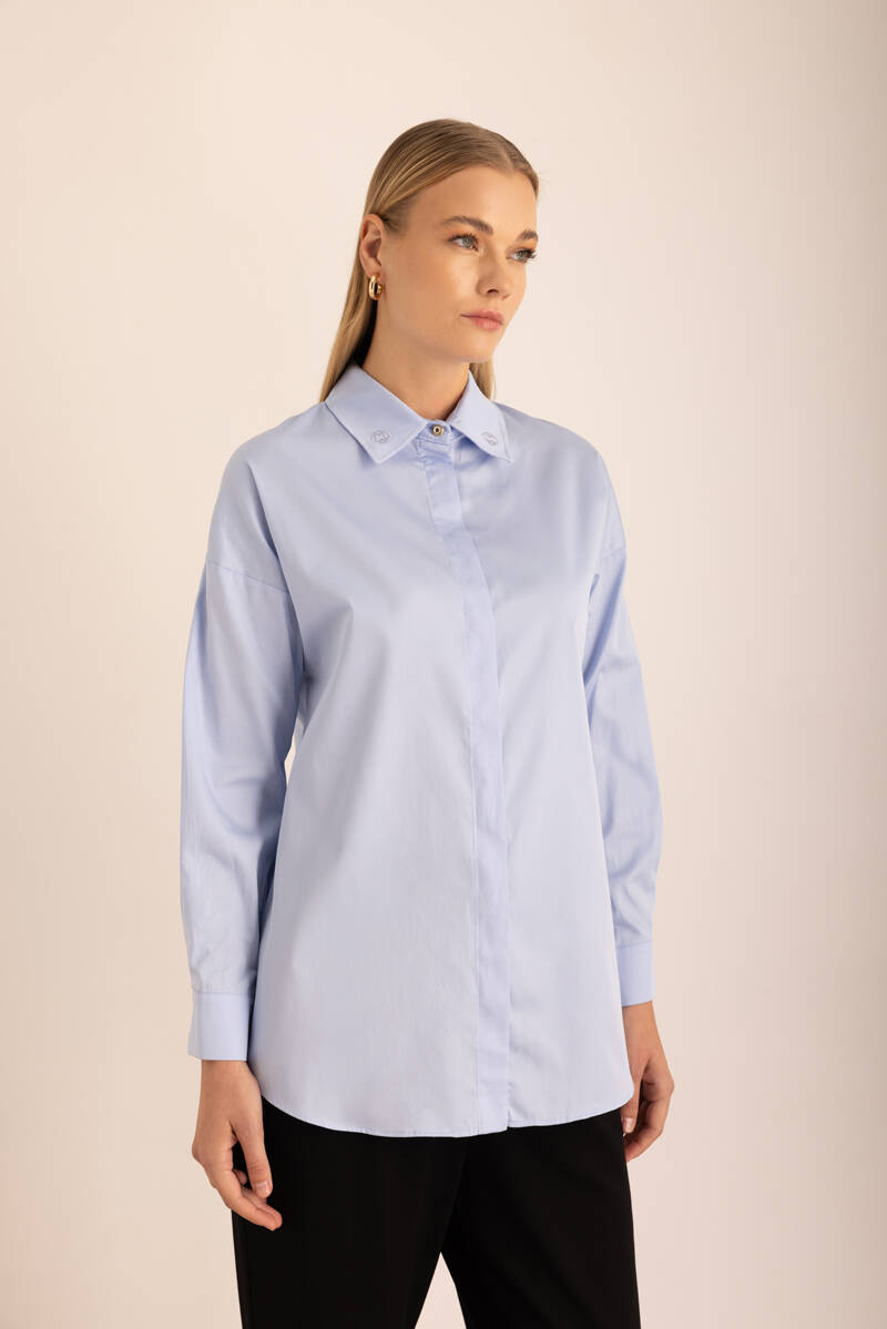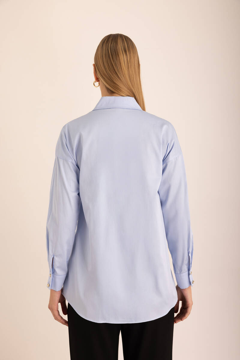 Mavi Sırtı Volan Detaylı Cotton Gömlek
