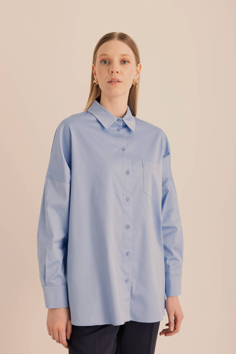 Mavi Sırtı Volan Detaylı Cotton Gömlek