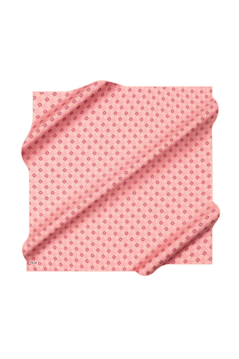 Logo Desenli 90X90 İpek Krep Saten Eşarp