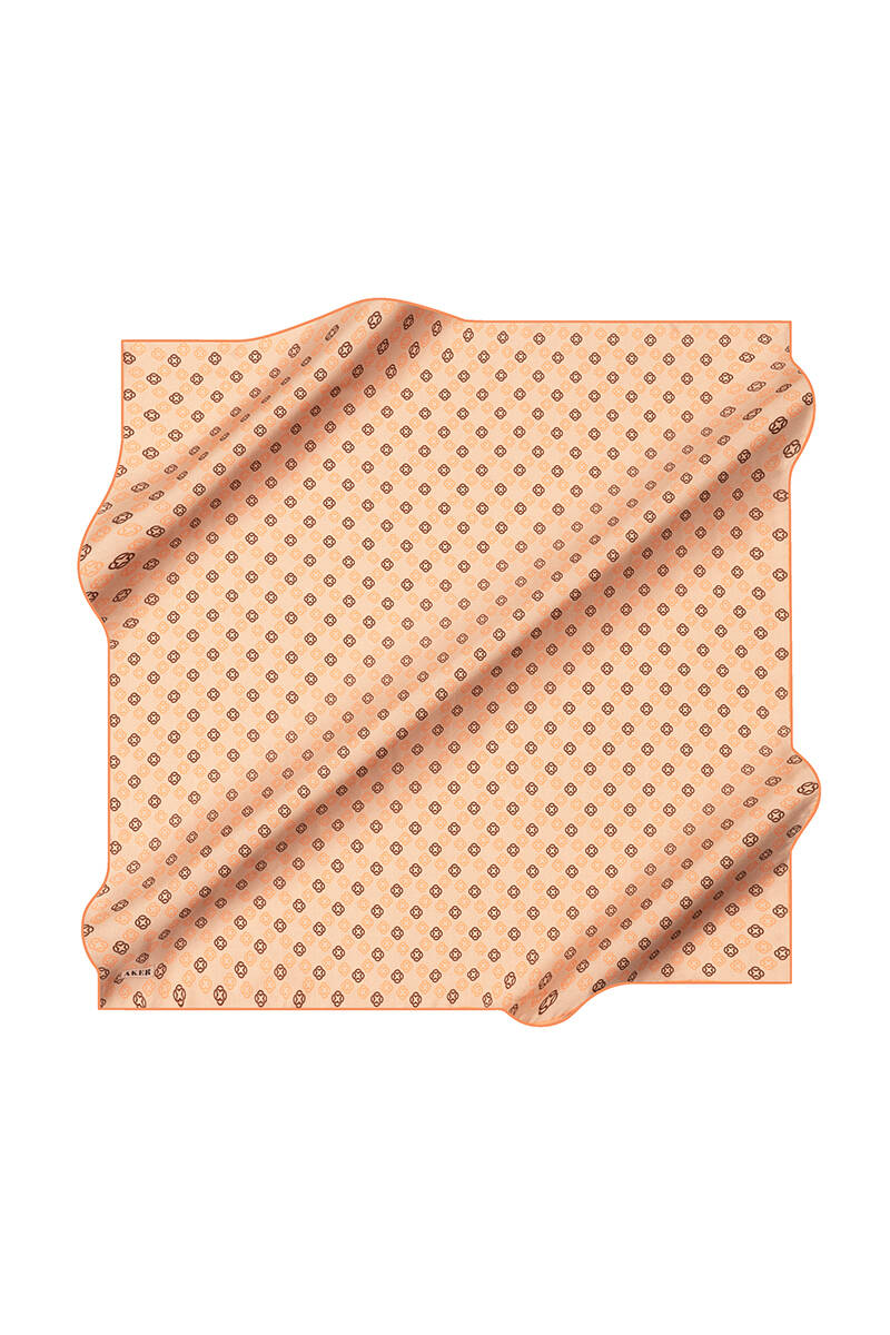 Logo Desenli 90X90 İpek Krep Saten Eşarp