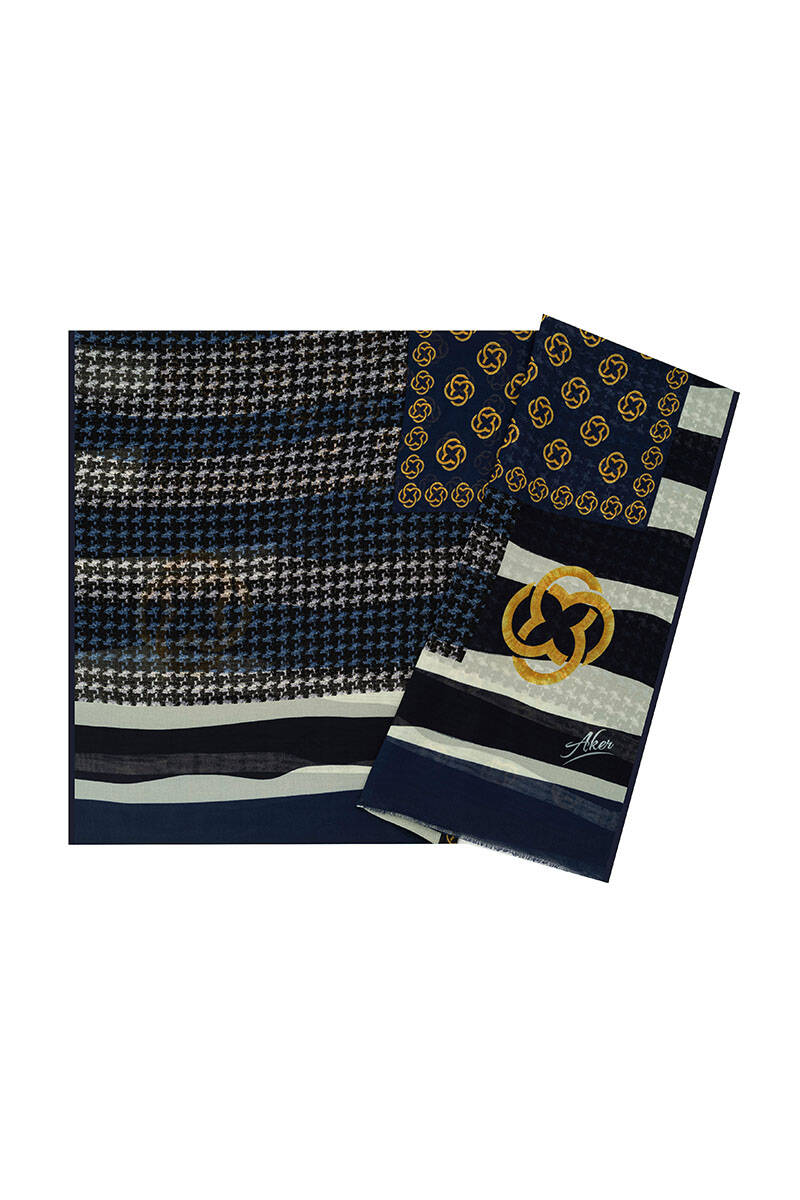 Lacivert Kare Jakar Şal