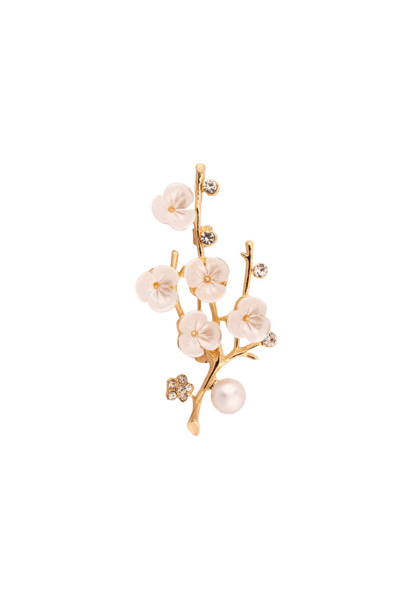 Altın 8025080 İNCİLİ ÇİÇEK BROŞ