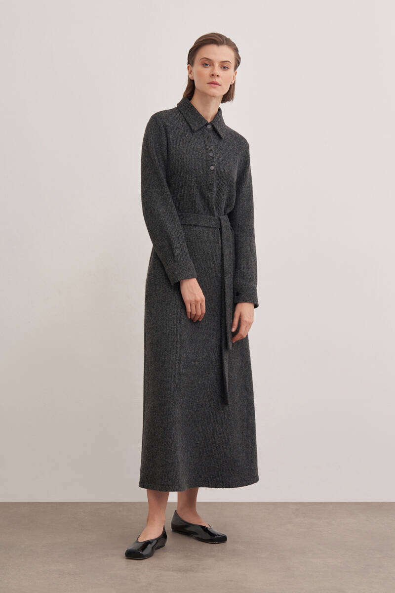 Siyah Doğal Dokulu Kumaş Gömlek Elbise