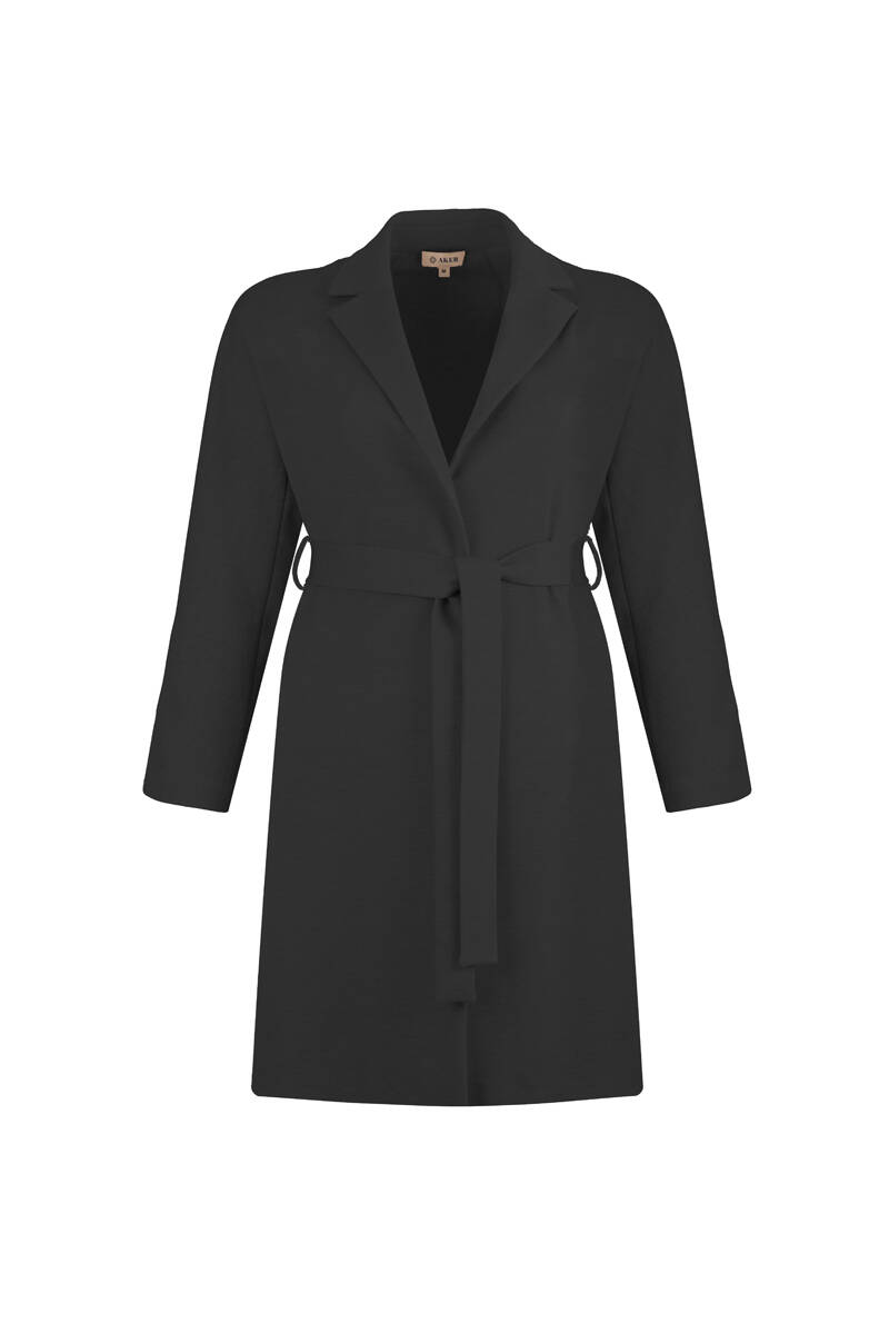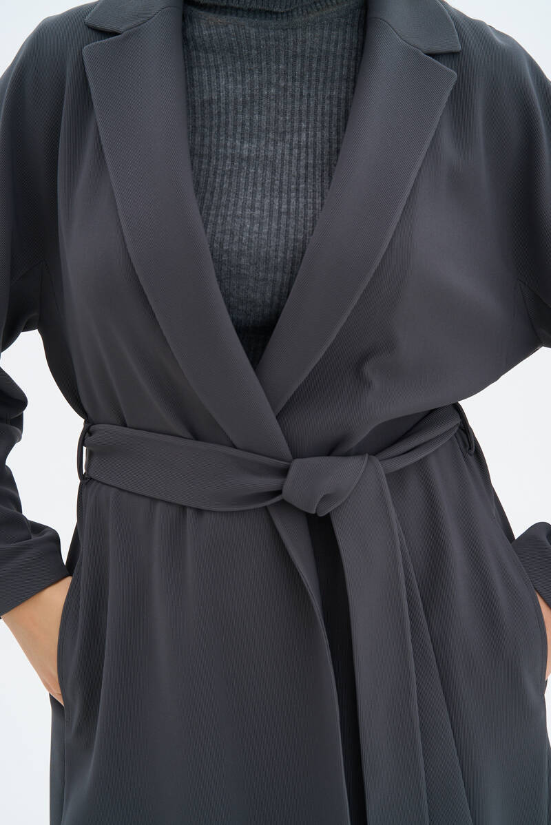 Siyah Kendinden Çizgili Kumaş Örme Hırka