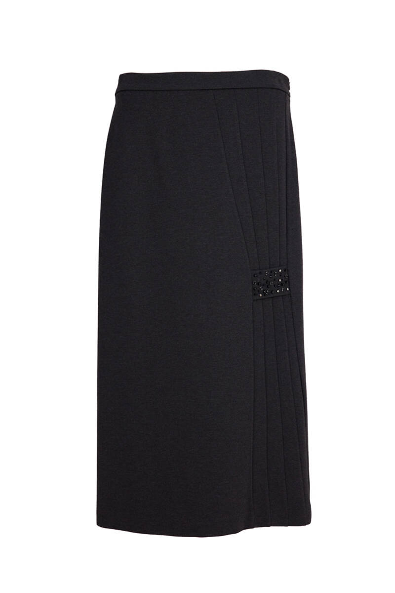 Antrasit Nervürlü İşleme Detaylı Örme Kumaş Etek