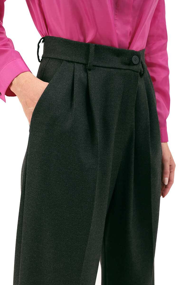 Antrasit Önden Pili Detaylı Cepli Pantolon