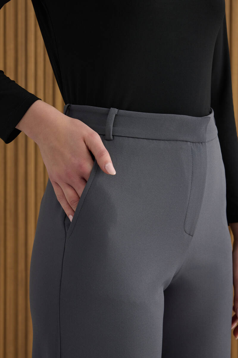 Antrasit Paçası Yırtmaçlı Dokuma Pantolon