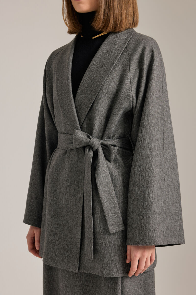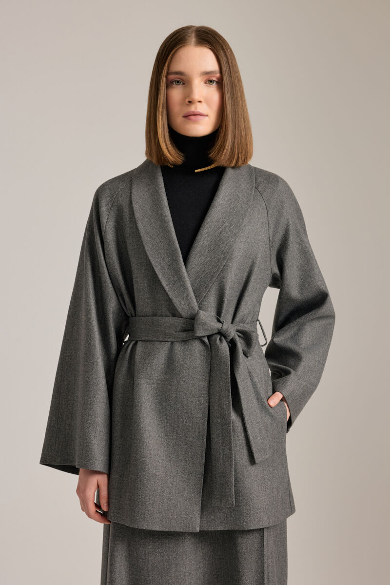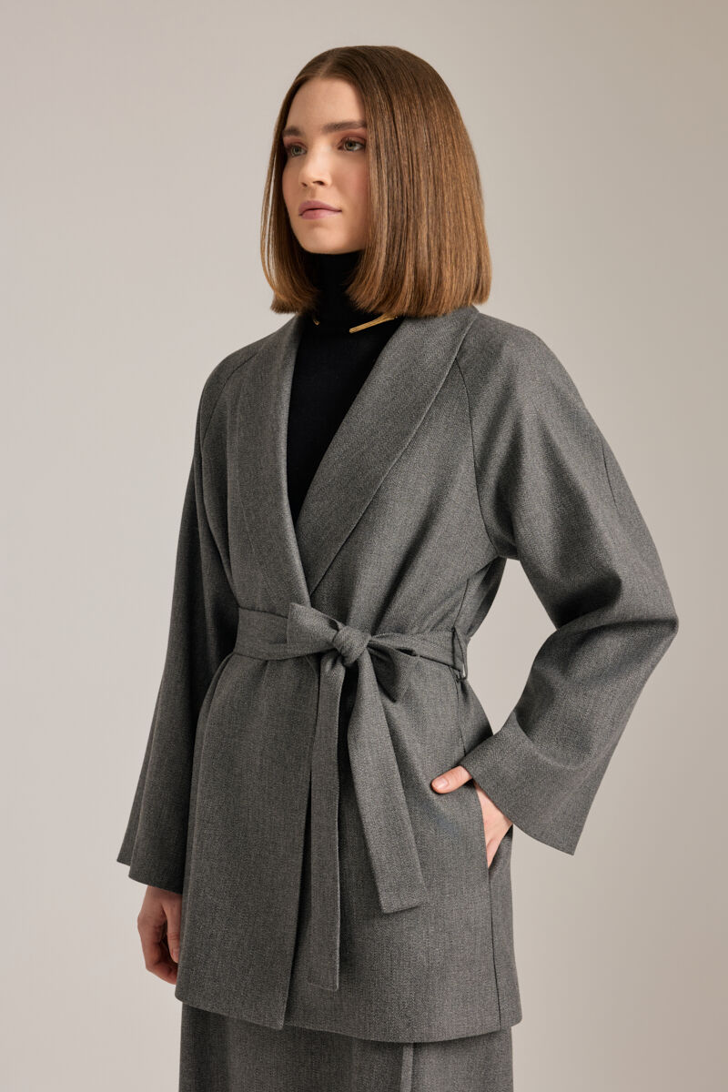 Antrasit Şal Yaka Seyyar Kuşaklı Ceket