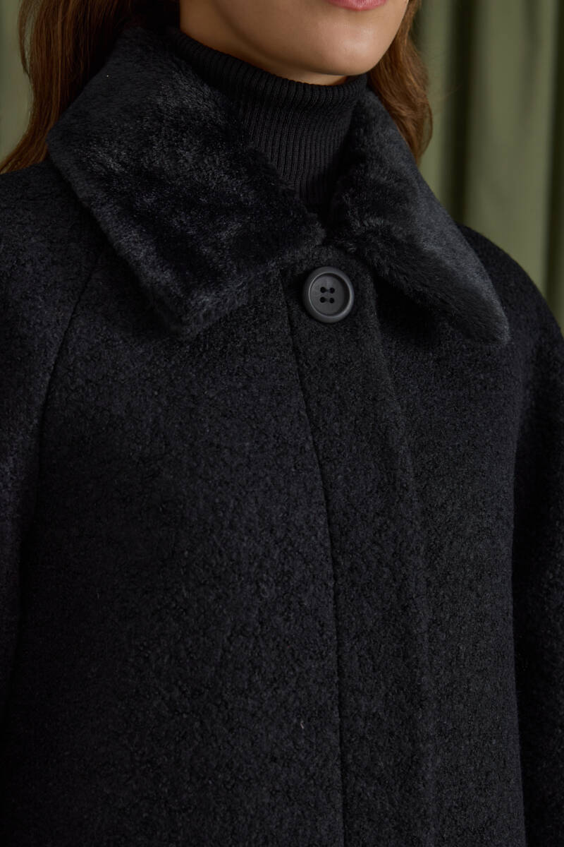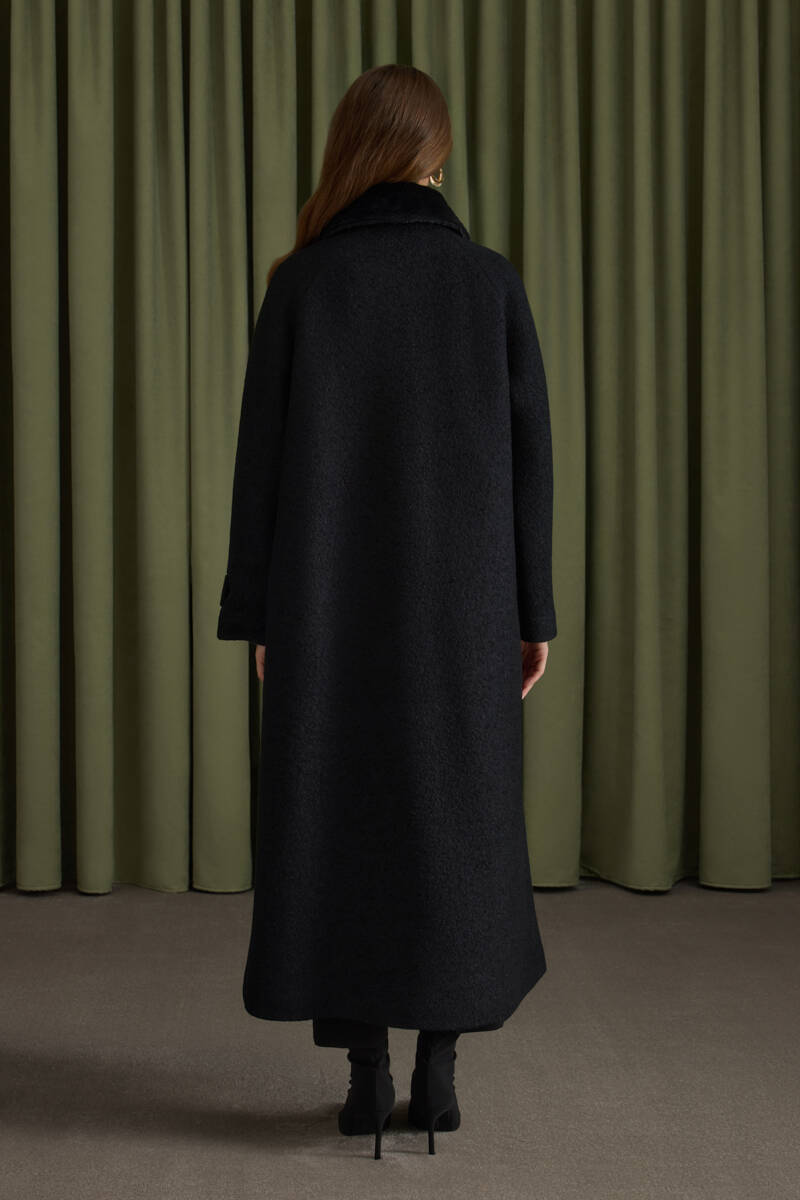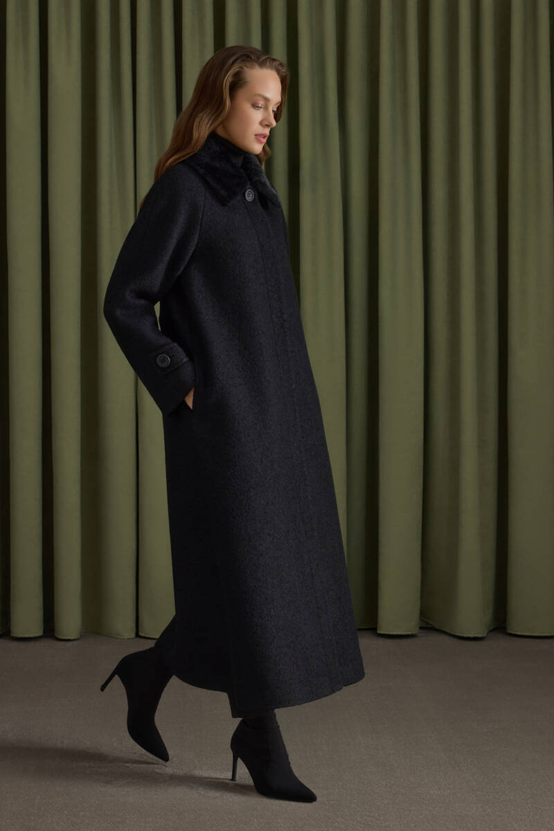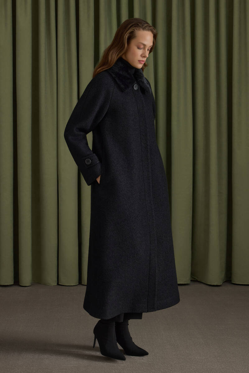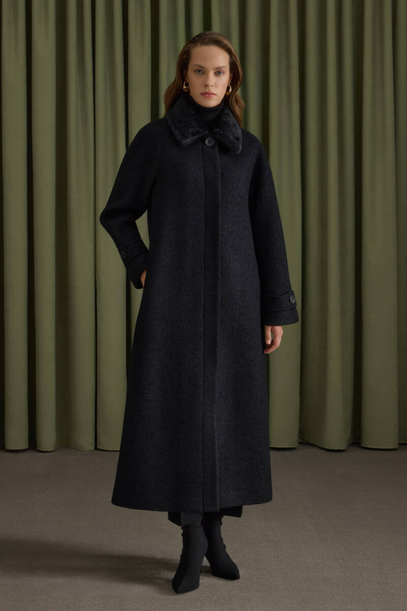 Siyah Seyyar Kürk Yakalı Manto