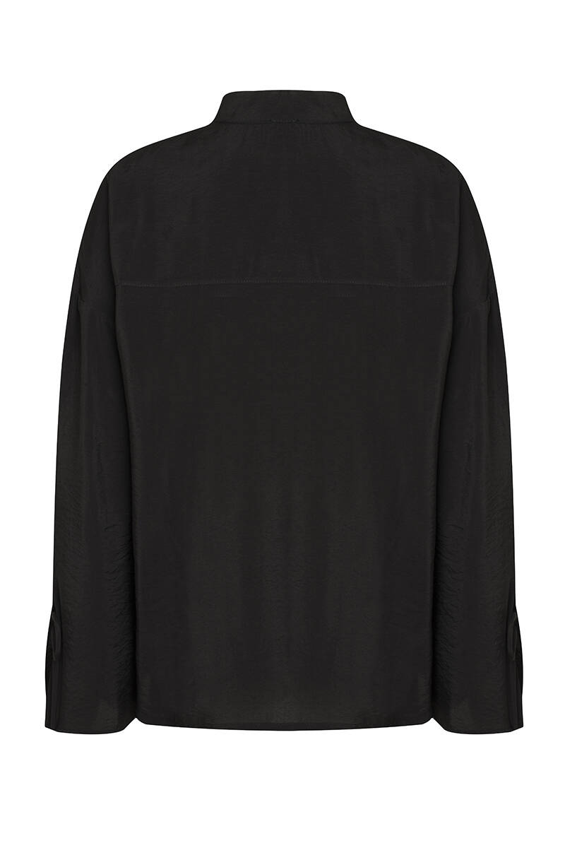 Siyah Gül Broşlu Bluz