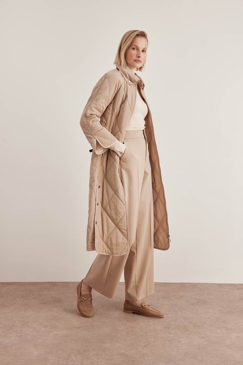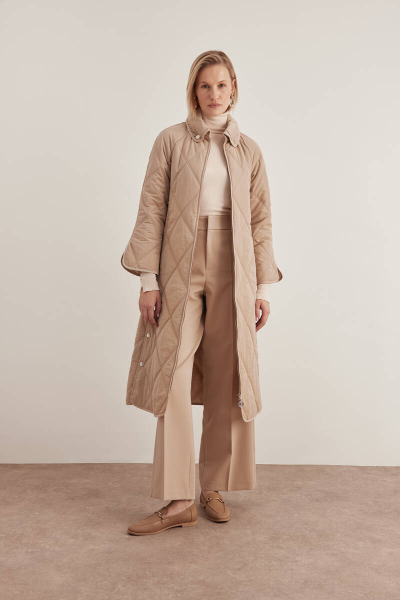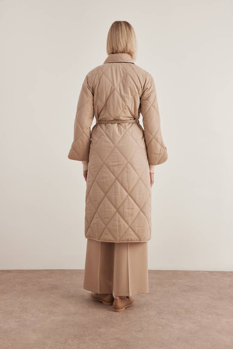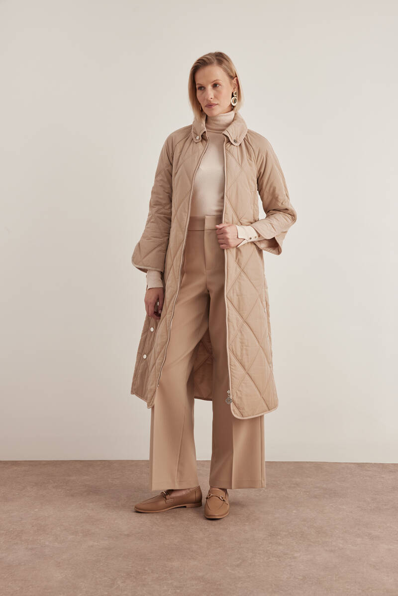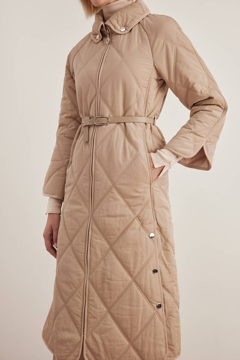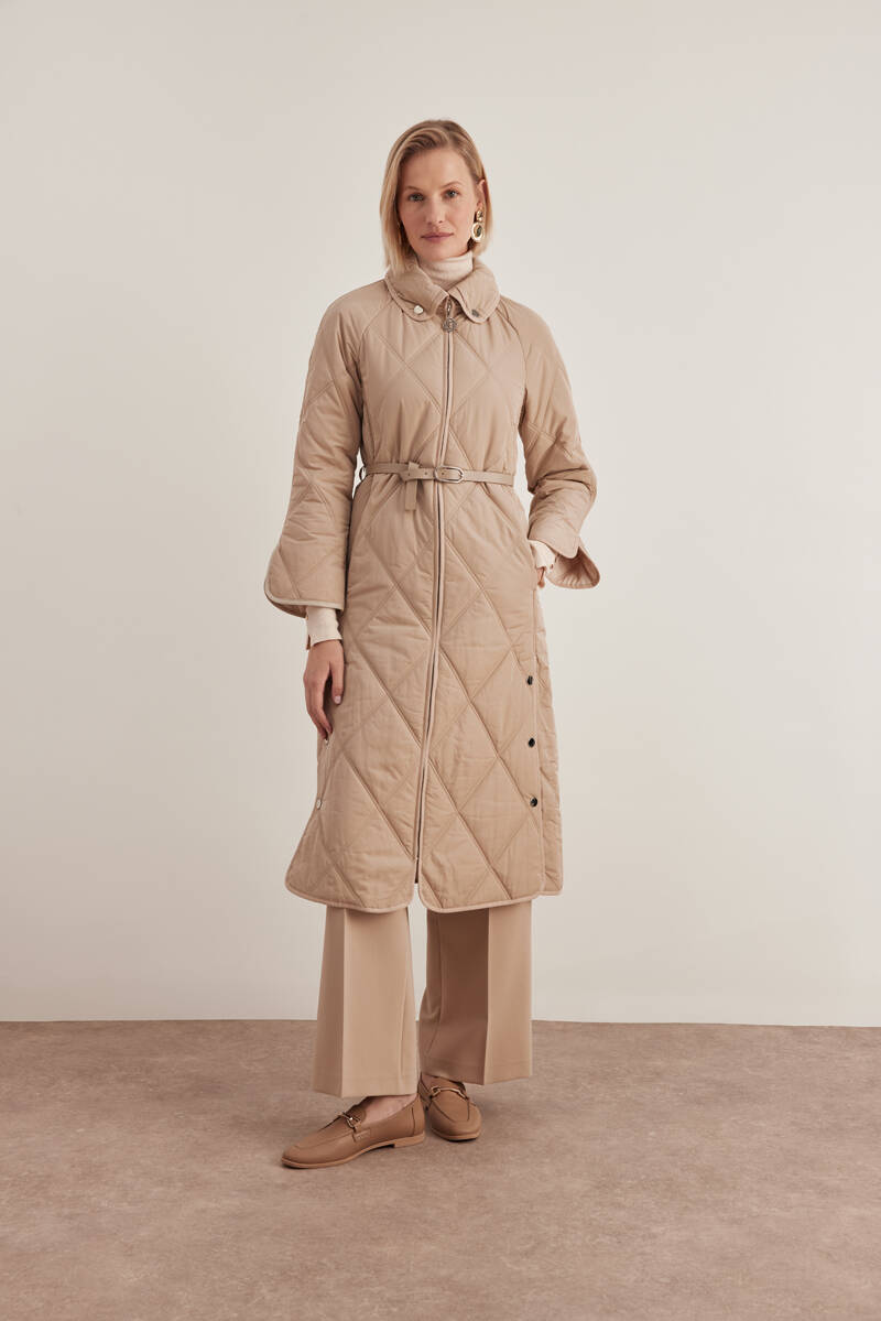 Ekru Belden Büzgülü Düğme Detaylı Mont