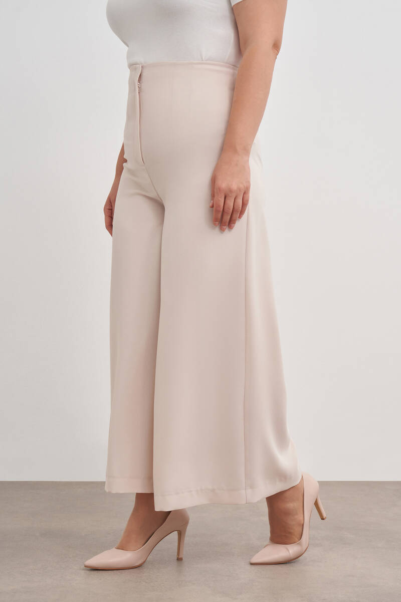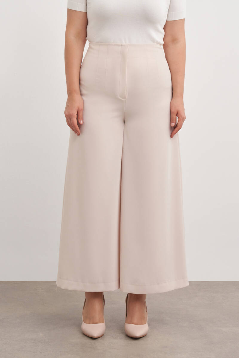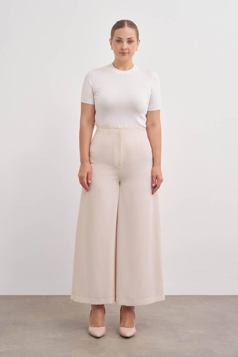 Bej Beli Lastik Detaylı Tencel Pantolon Etek