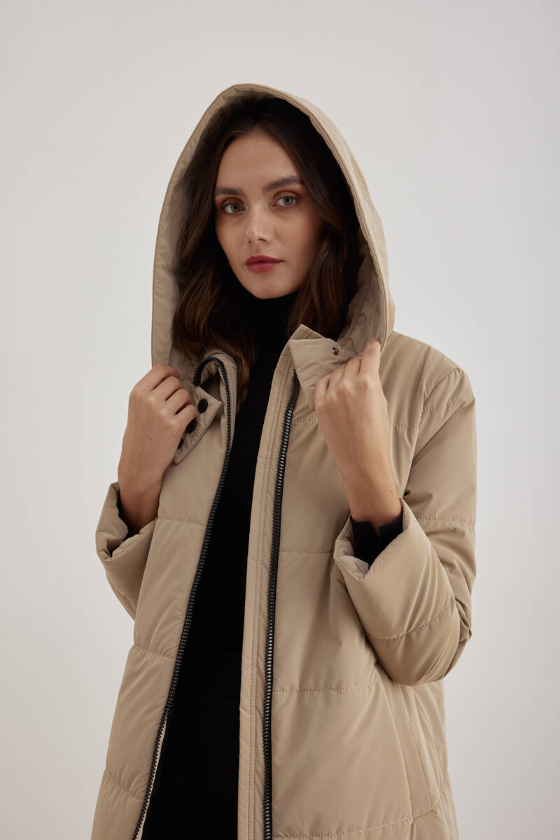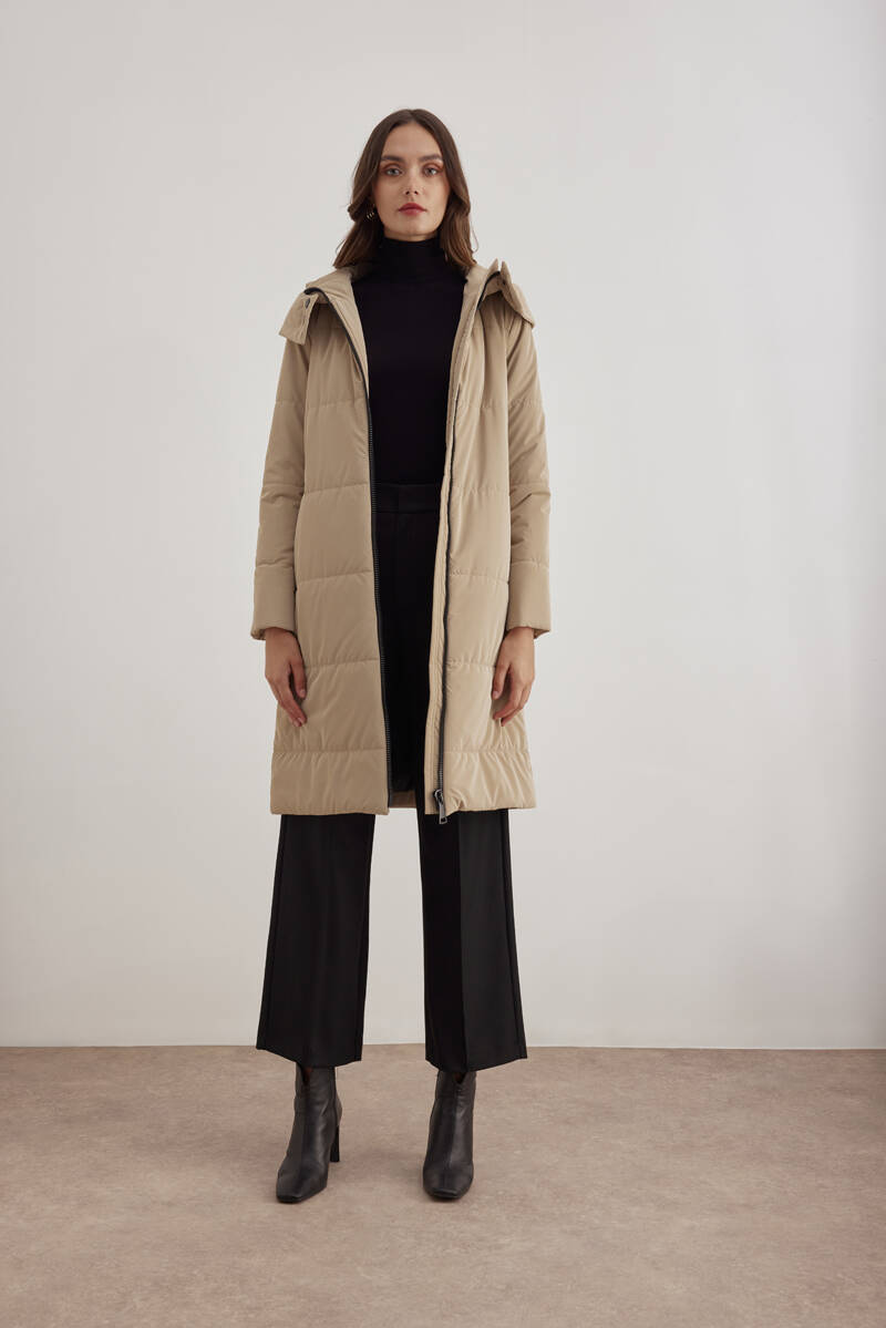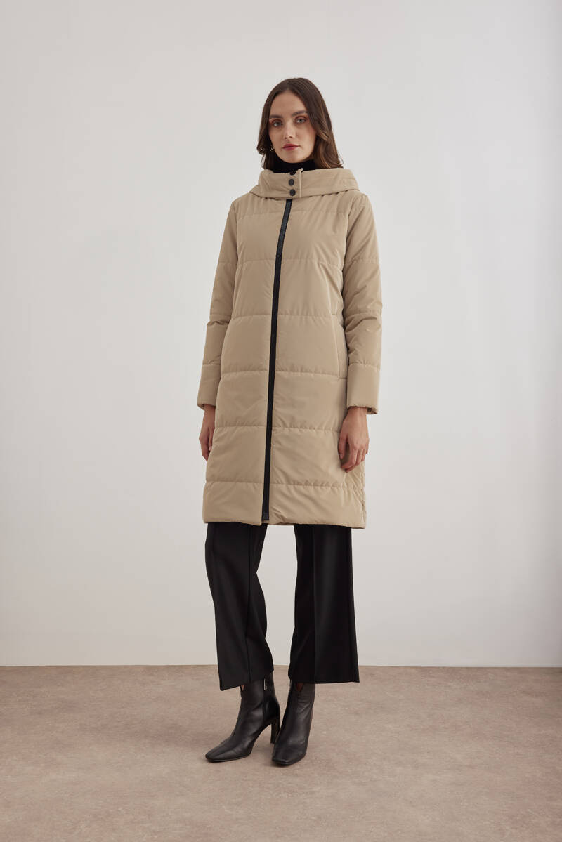 Bej 5829111 Yaka Detaylı Kapitone Kısa Mont