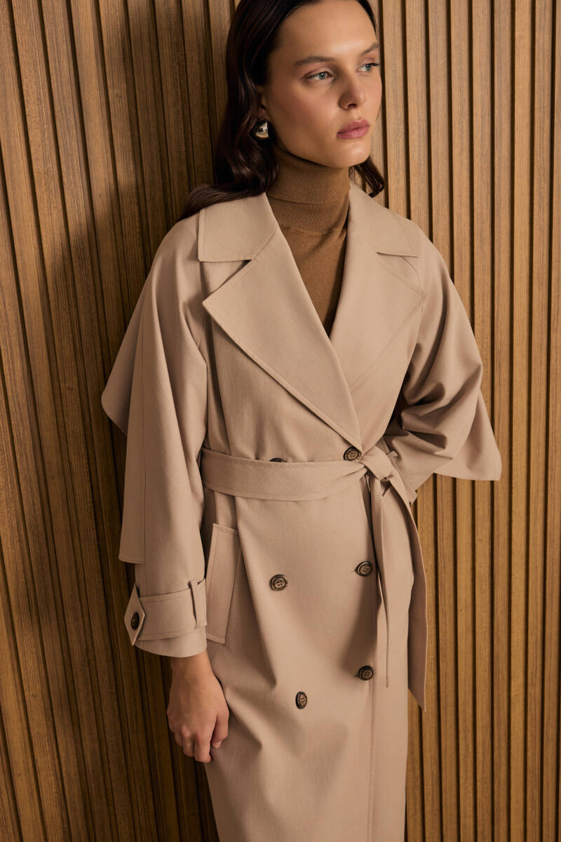 Bej 7178111 Sırtı Rüzgarlıklı Pardösü