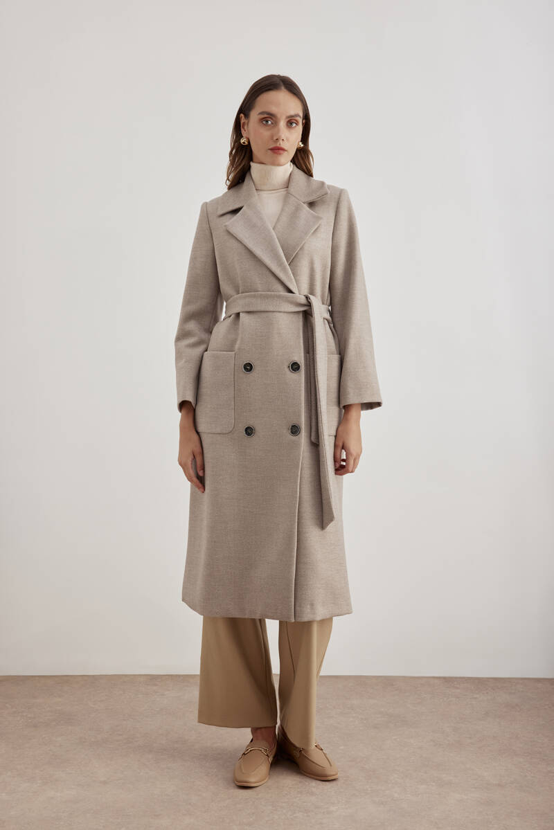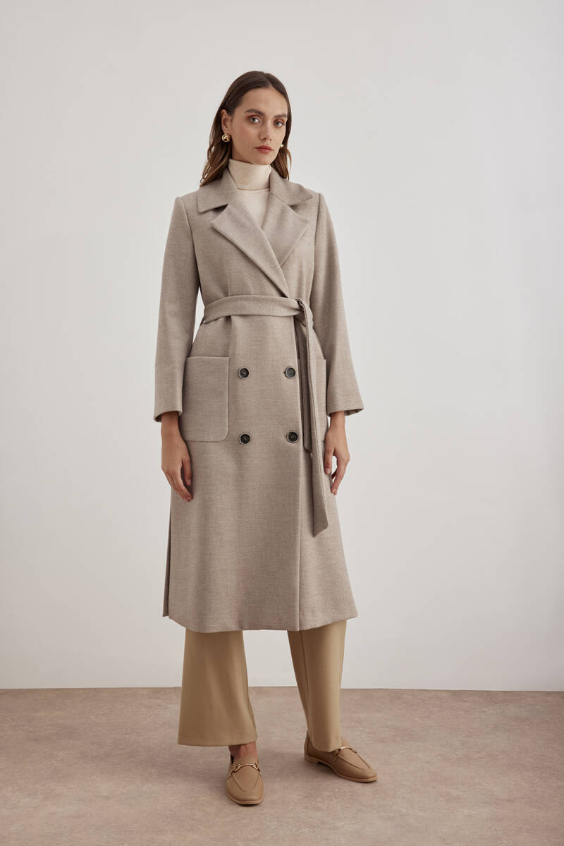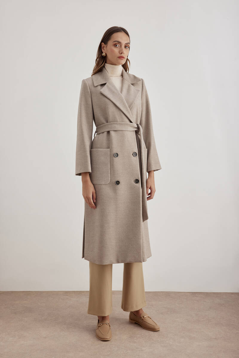 Camel İçi Kürk, Suni Deri Şal Yaka Kaban