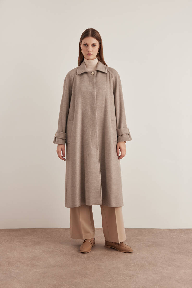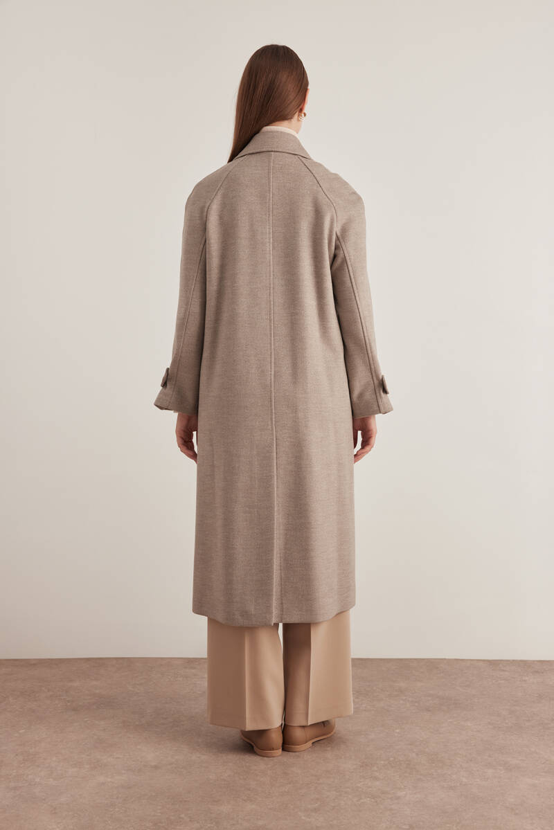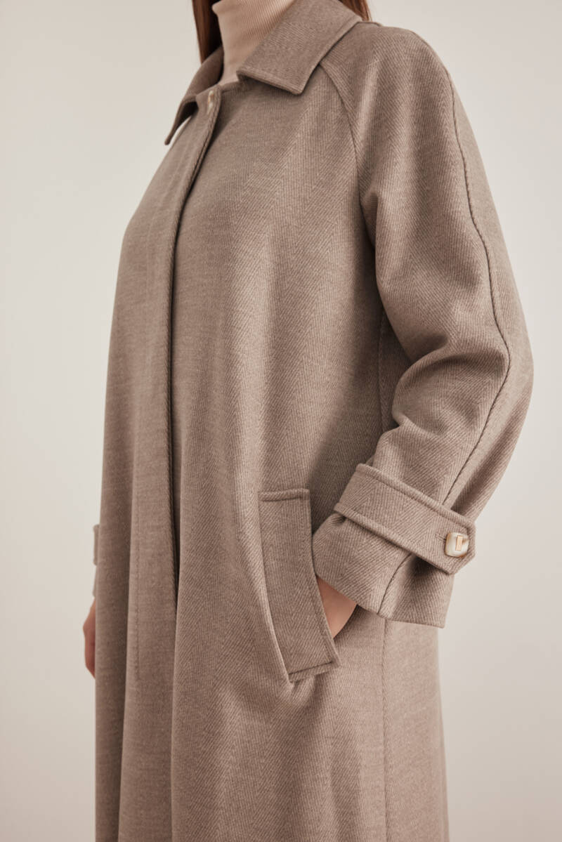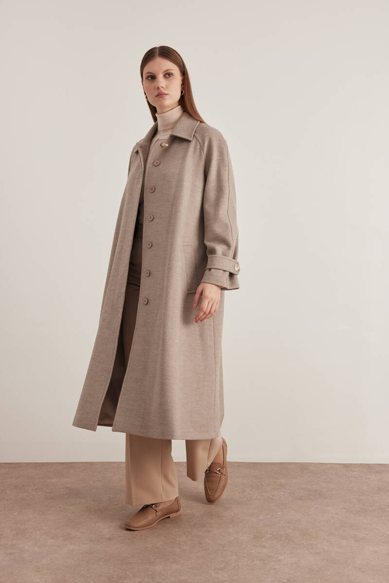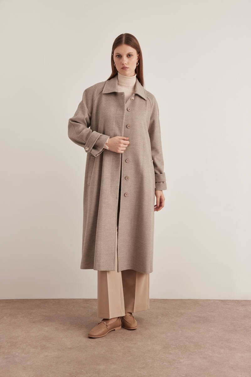 Bej 8584112 Gömlek Yaka Midi Boy Kaban