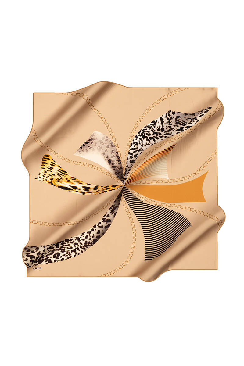 Geometrik Desenli 90X90 İpek Krep Saten Eşarp