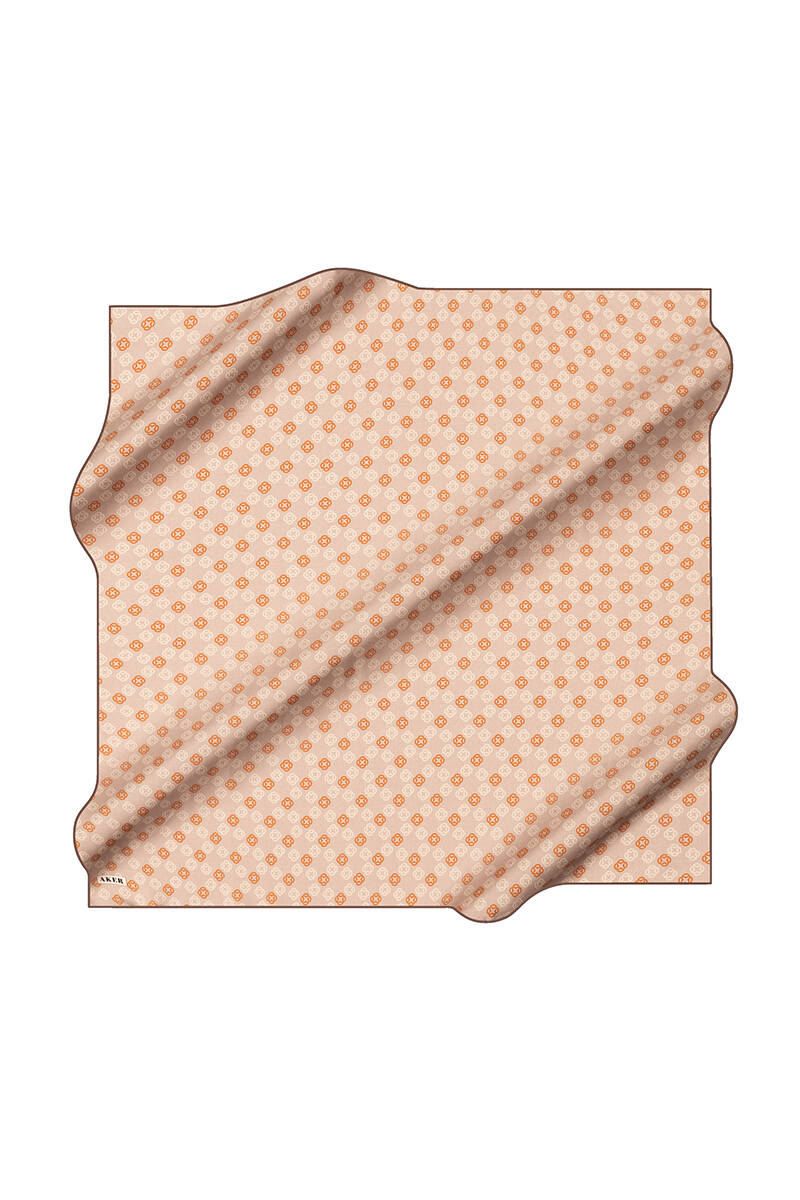 Logo Desenli 90X90 İpek Krep Saten Eşarp