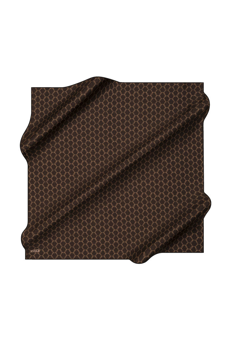 Geometrik Desenli 90X90 İpek Krep Saten Eşarp