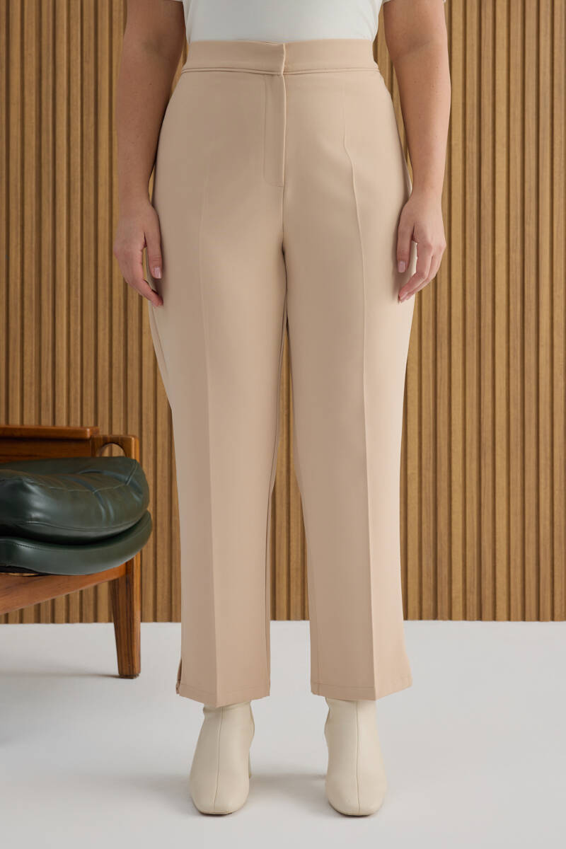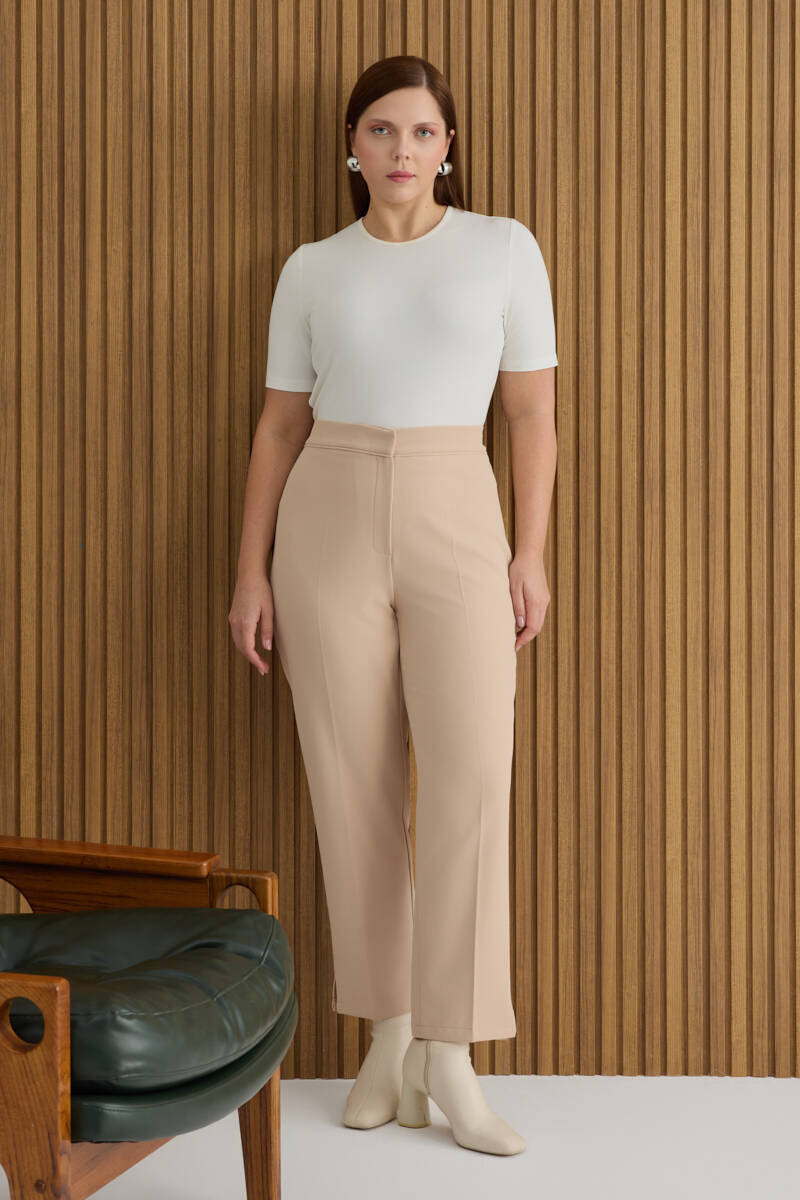 Bej Arka Beli Lastik Detaylı Dokuma Pantolon