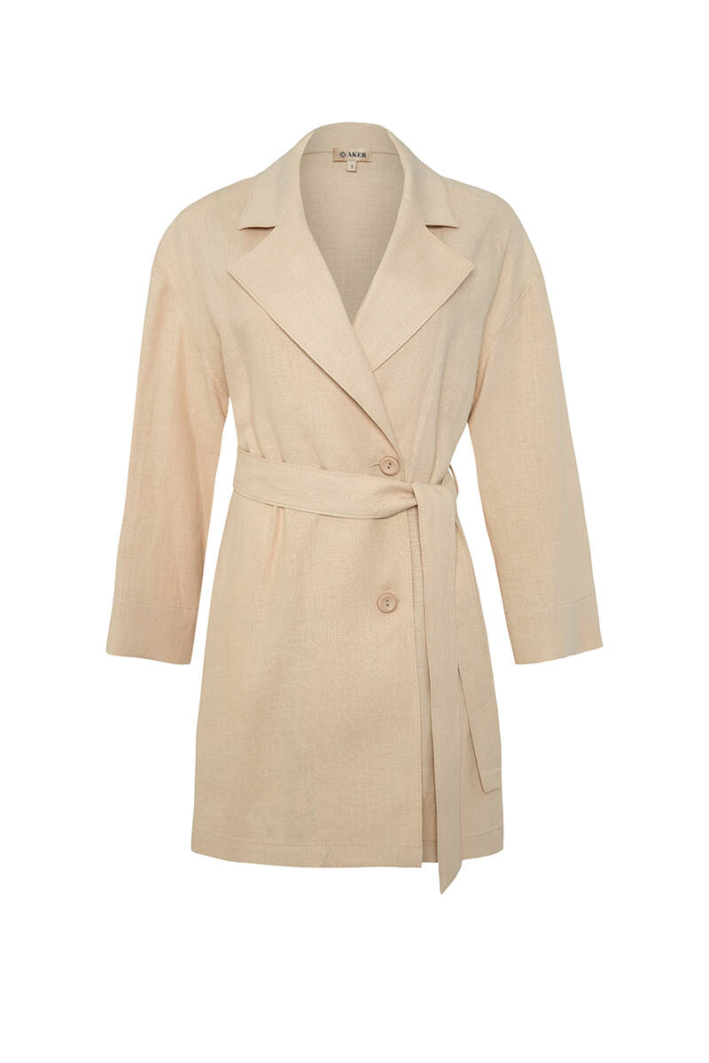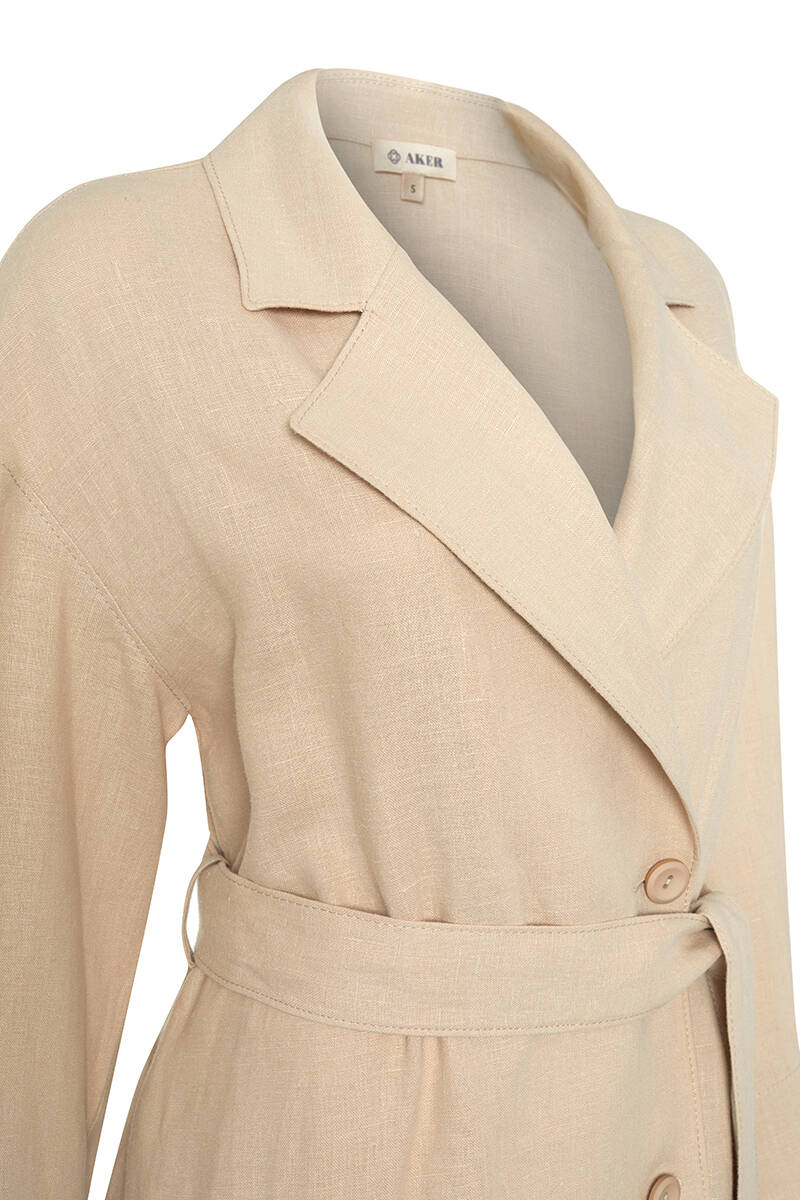 Mercan Belden Kuşaklı Keten Ceket