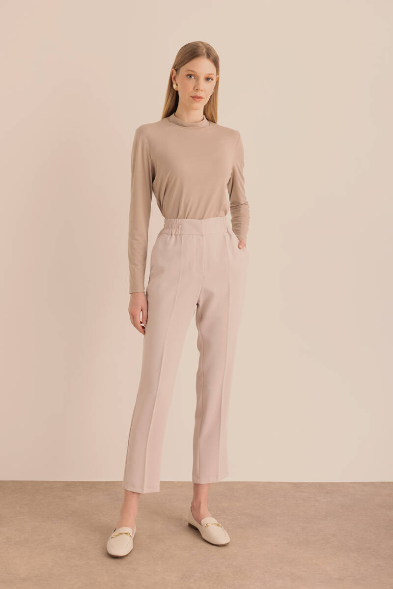 Siyah Belden Metal Toka Bağlama Detaylı Dokuma Pantolon
