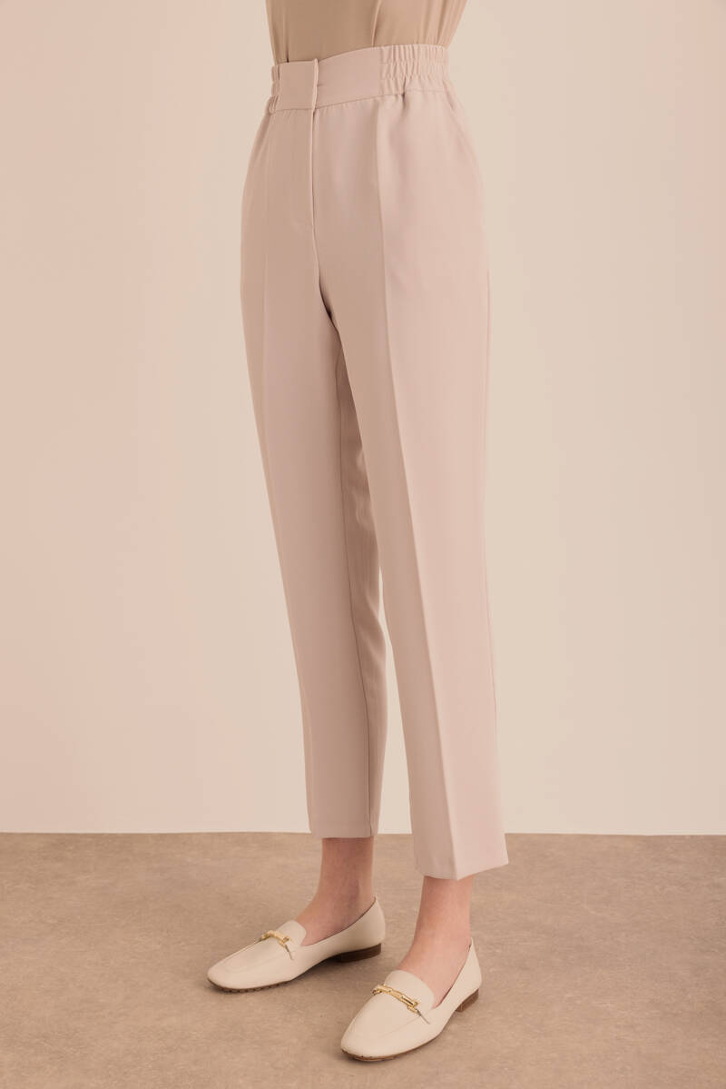 Fuşya Beli ve Paçası Lastikli Balon Form Keten Pantolon