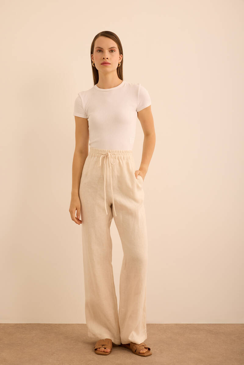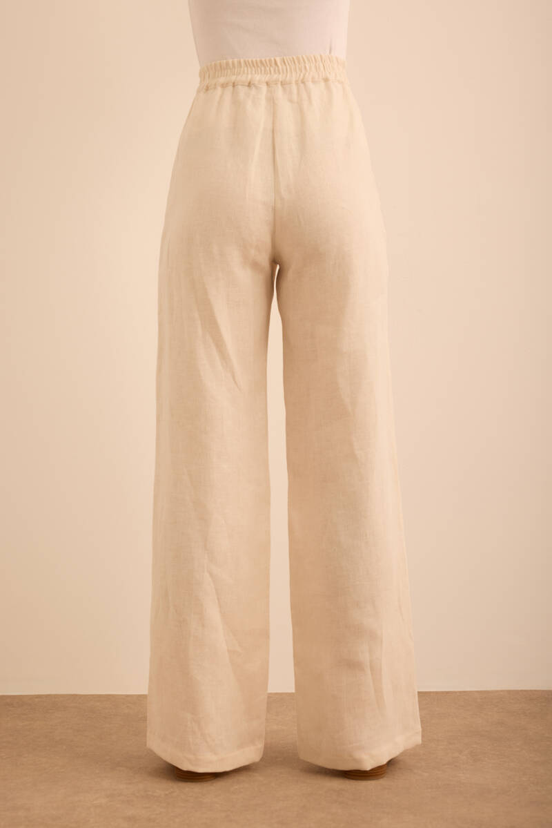 Siyah Beli ve Paçası Lastikli Balon Form Keten Pantolon