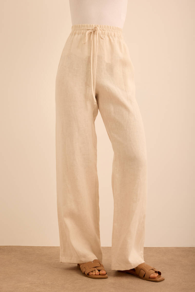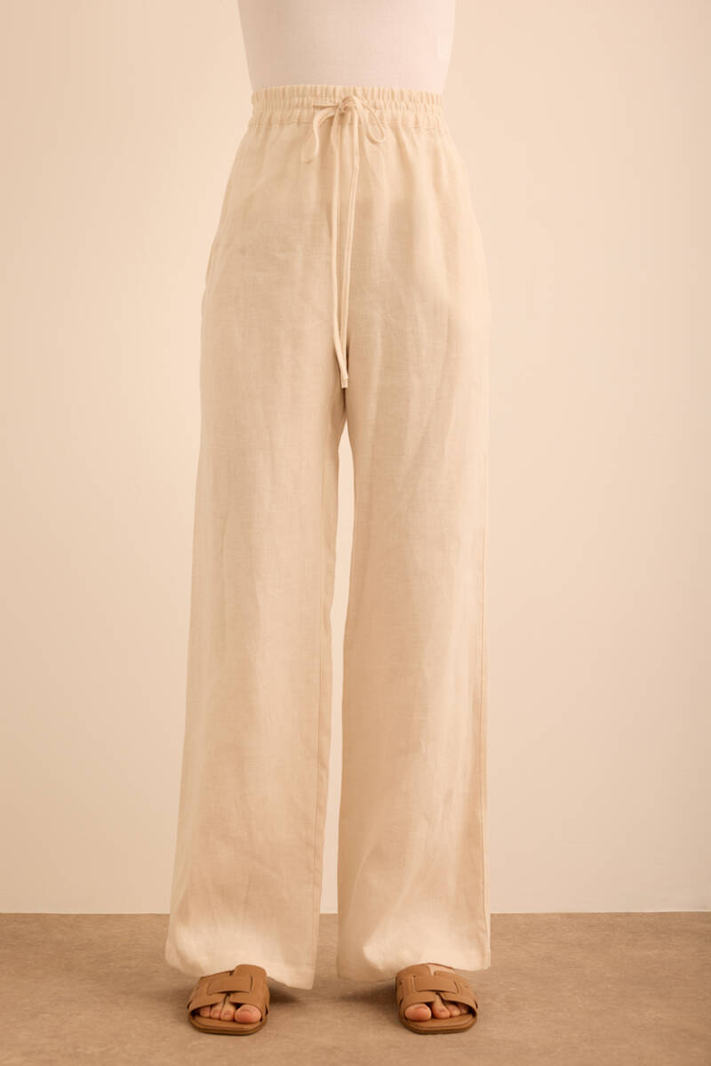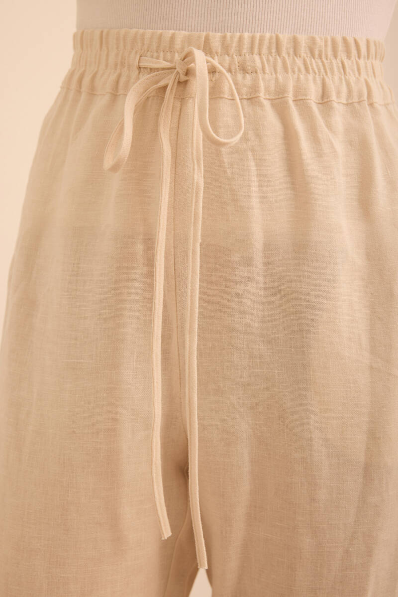 Fuşya Beli ve Paçası Lastikli Balon Form Keten Pantolon