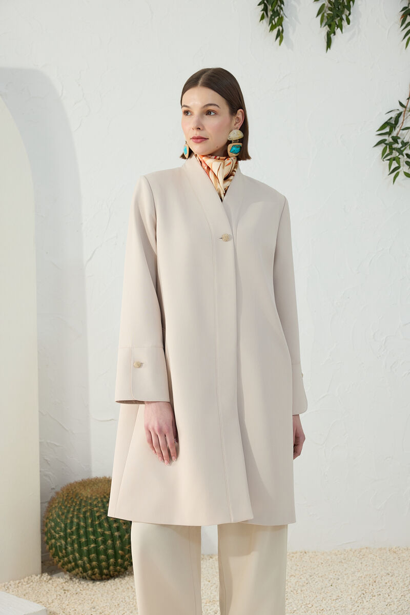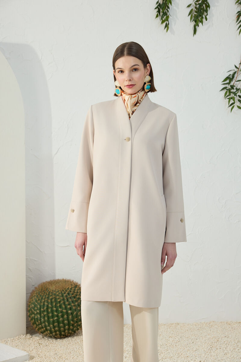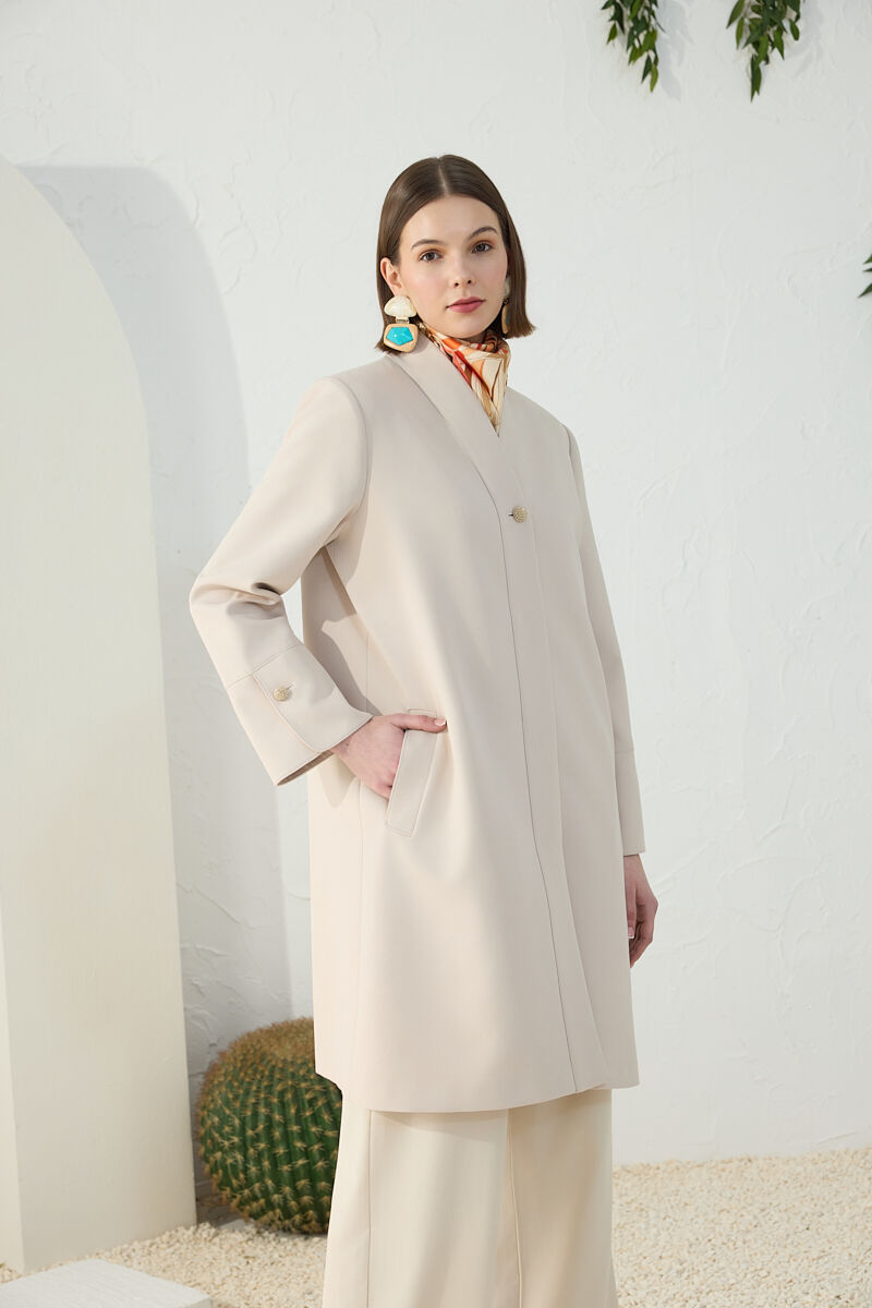 Bej Boncuk Düğmeli Kap