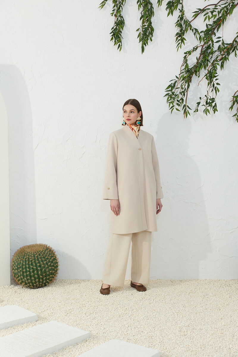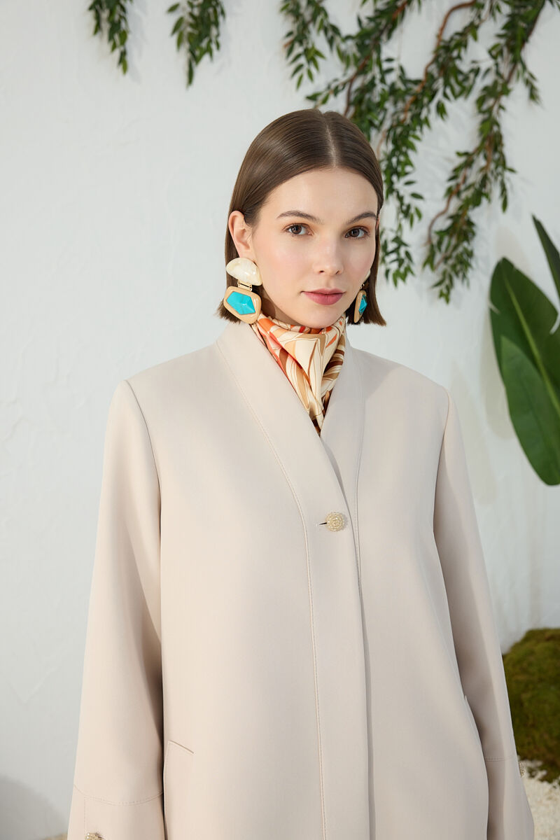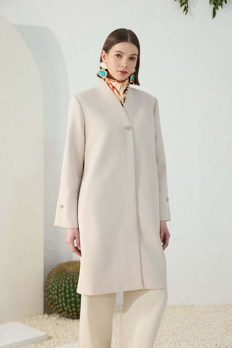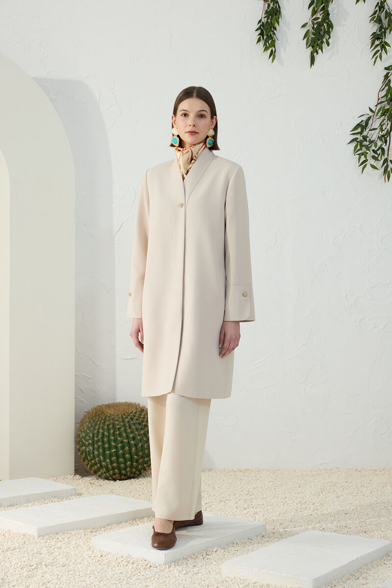 Bej Boncuk Düğmeli Kap
