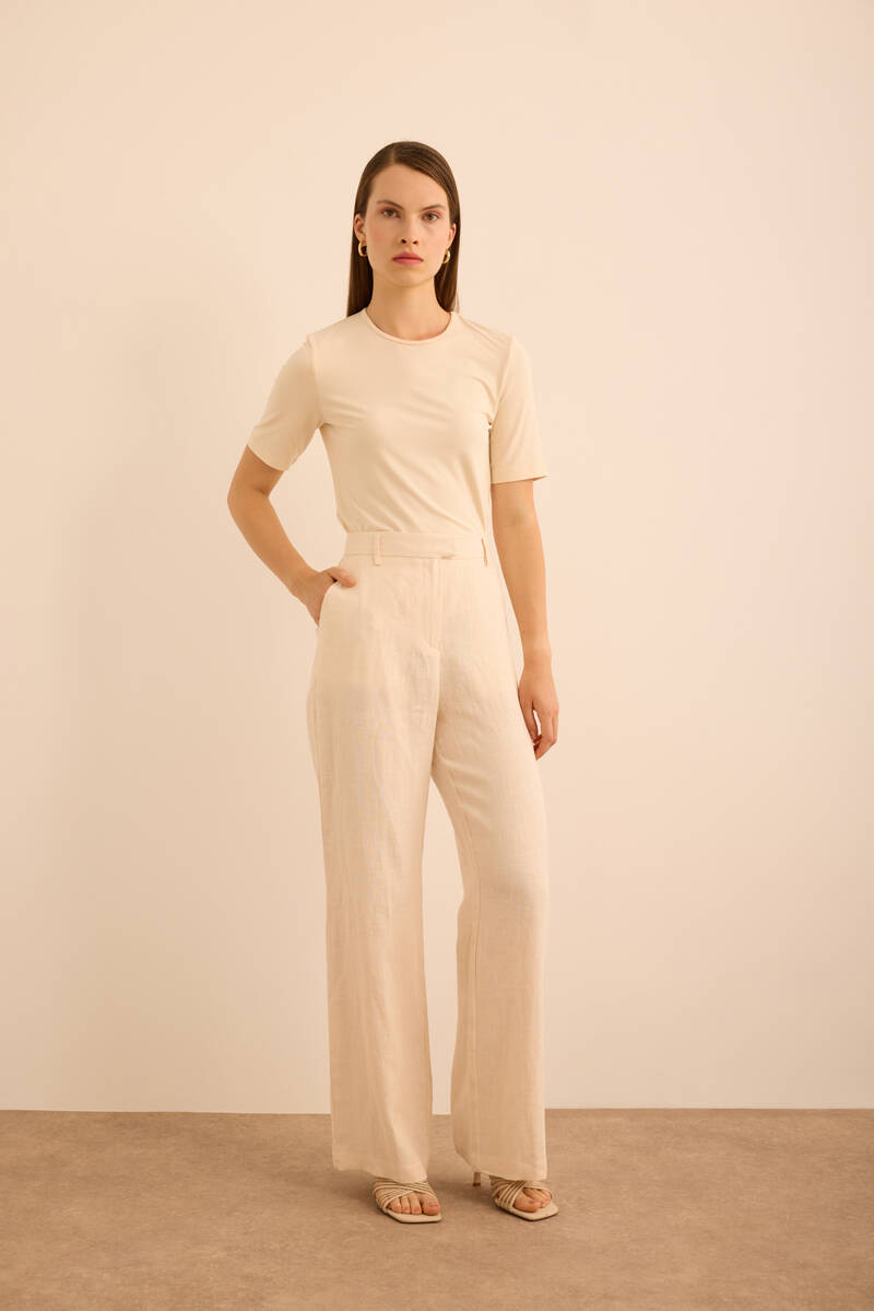 Siyah Belden Metal Toka Bağlama Detaylı Dokuma Pantolon