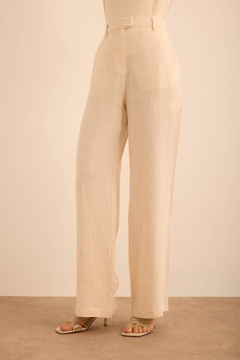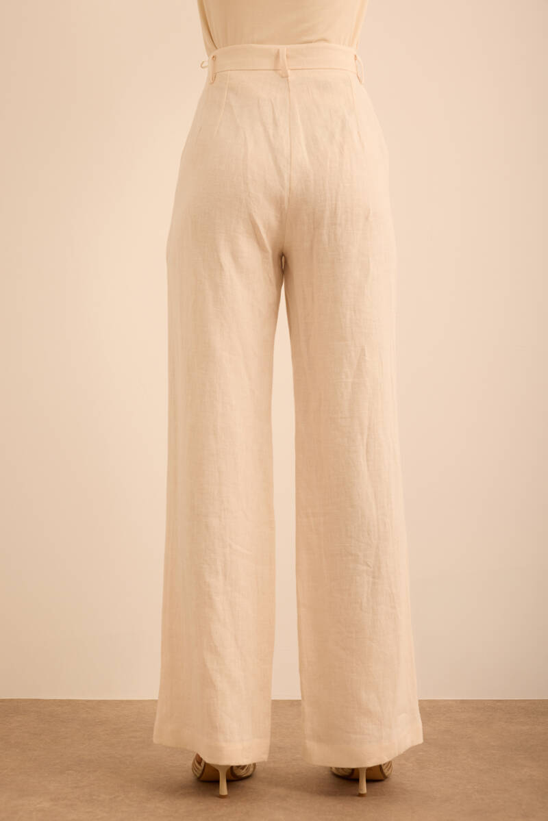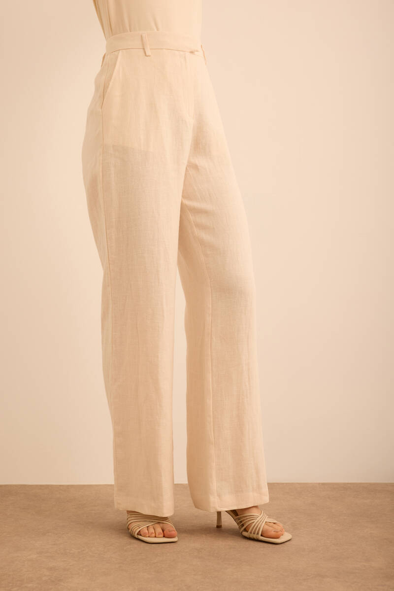 Fuşya Beli ve Paçası Lastikli Balon Form Keten Pantolon