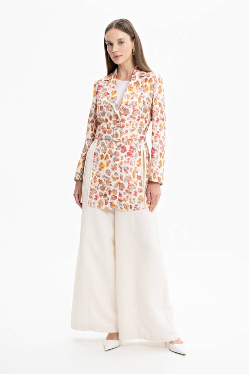 Kırmızı Fleto Cepli Düğmeli Ceket