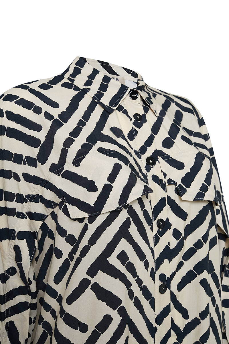 Bej Desenli Rahat Kesim Kısa Kap
