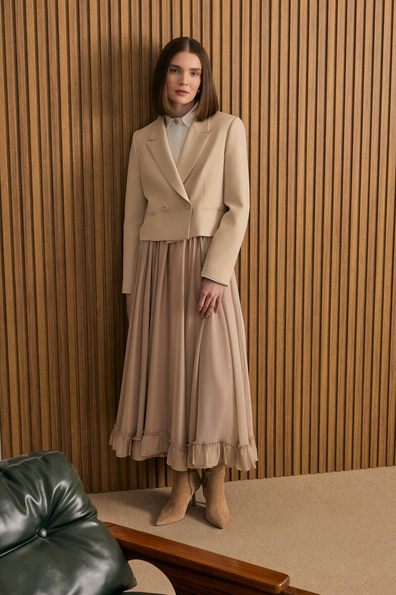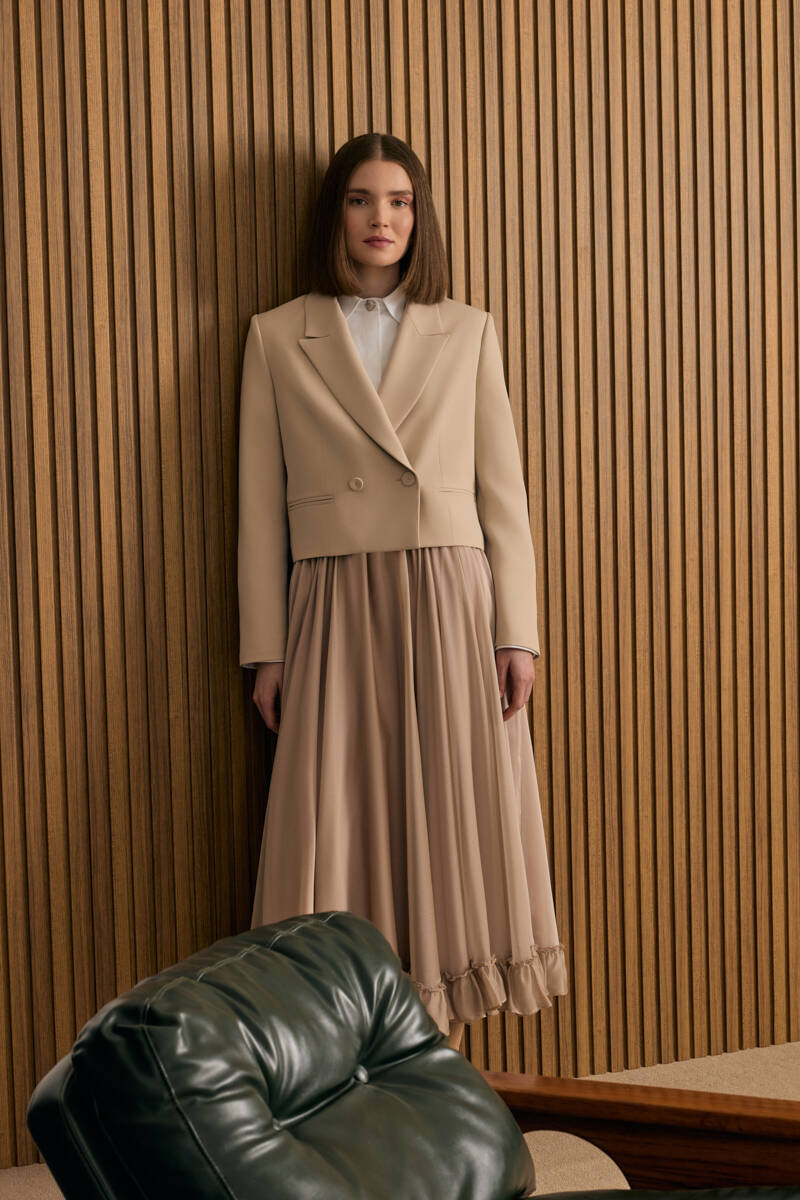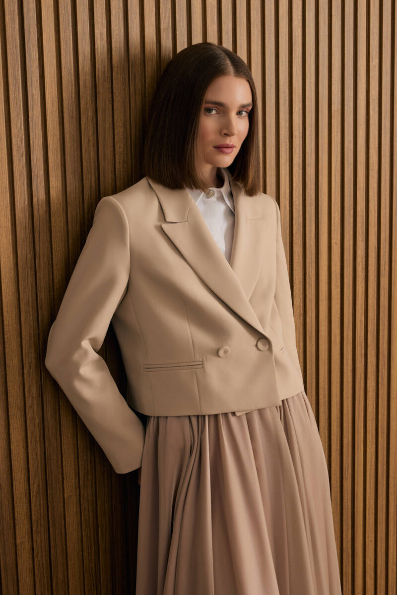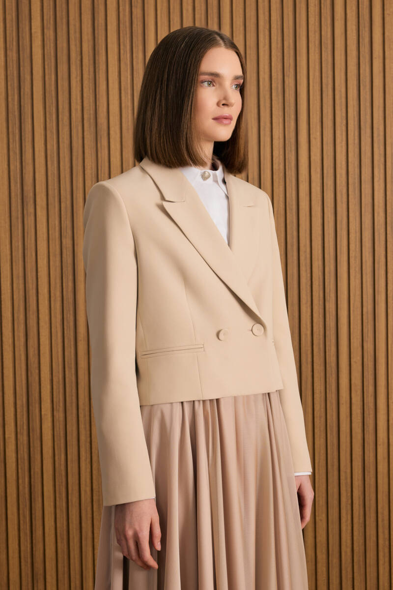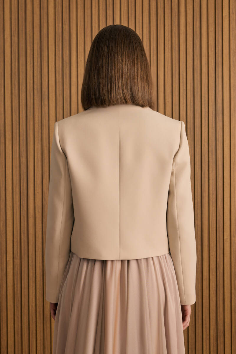 Bej Dokuma Kısa Ceket