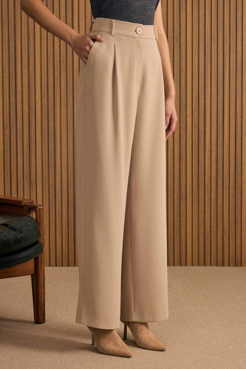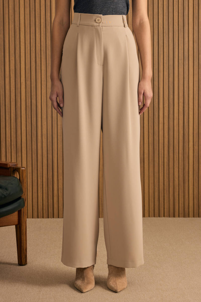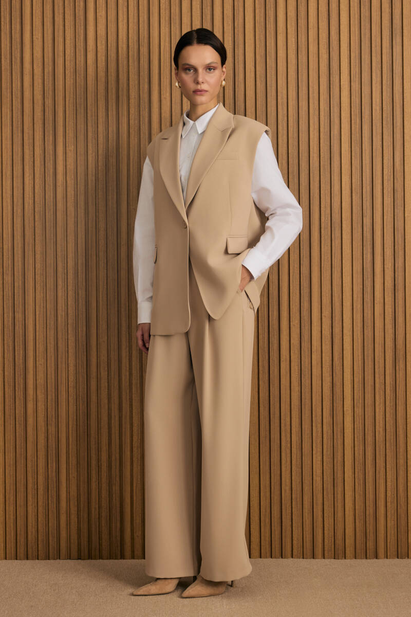 Bej Klasik Tencel Keten Pantolon