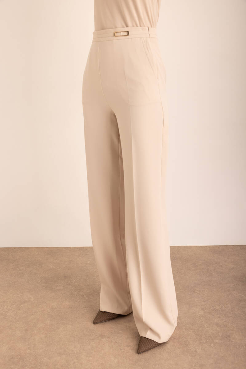 Siyah Belden Metal Toka Bağlama Detaylı Dokuma Pantolon