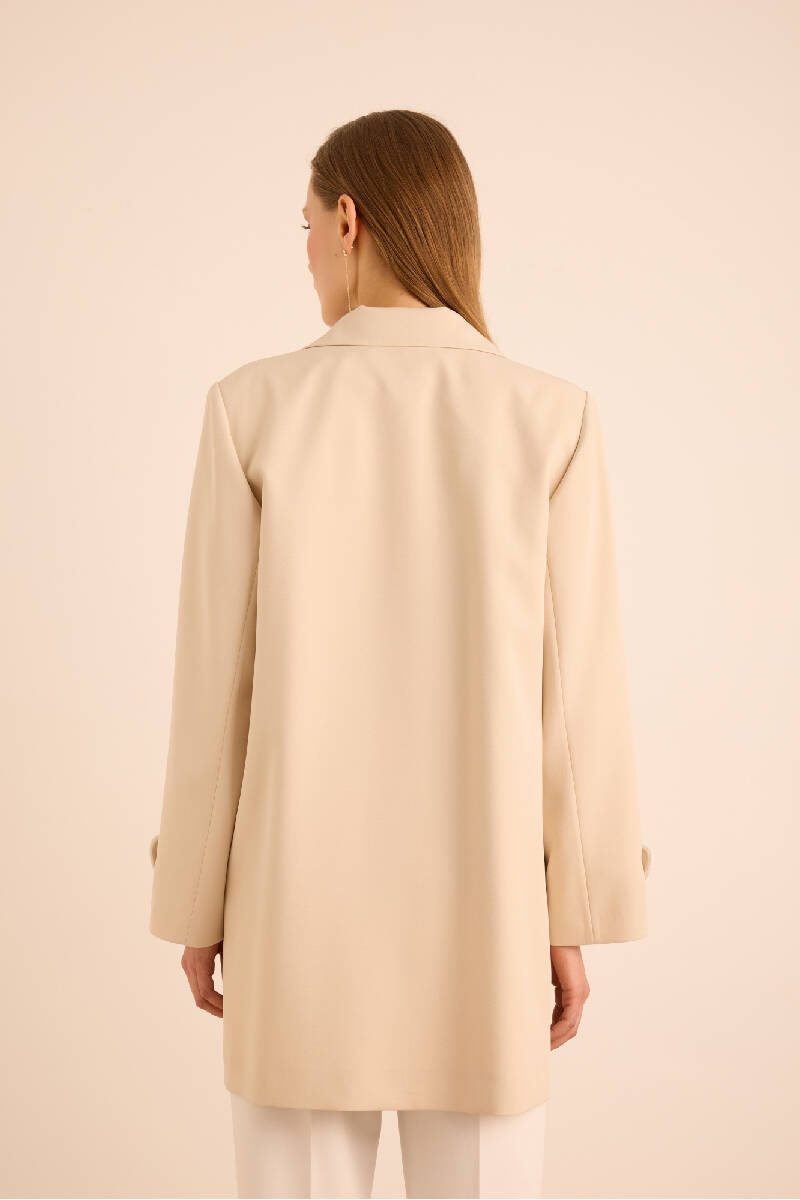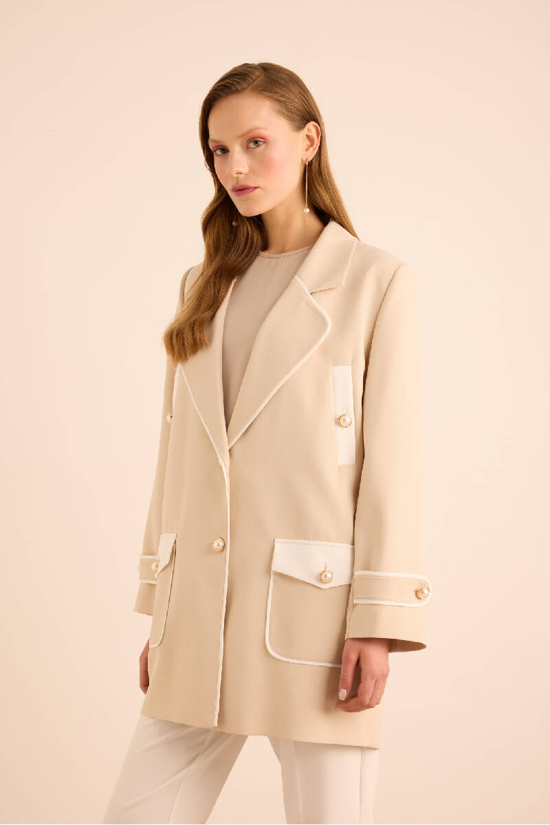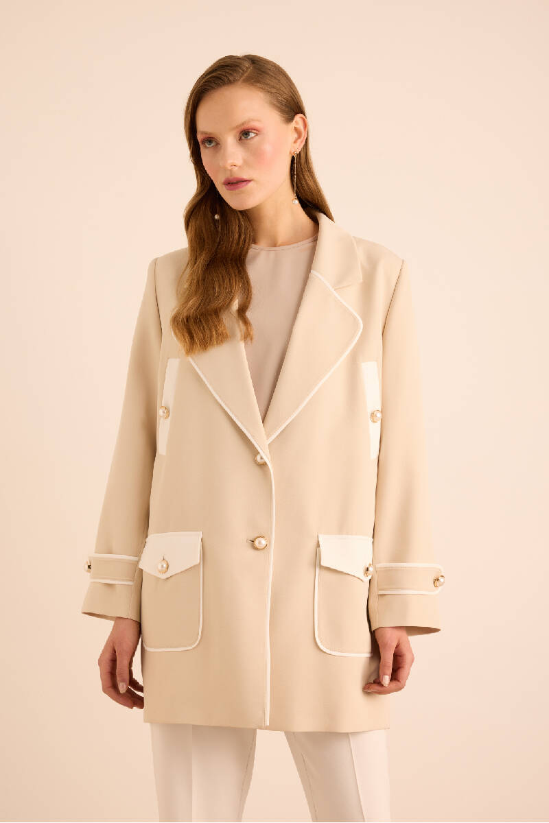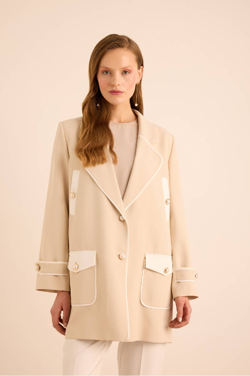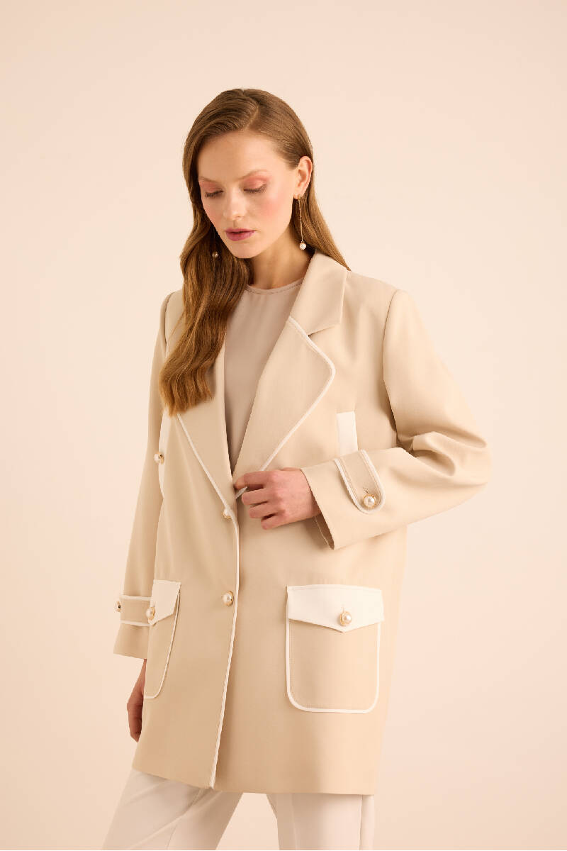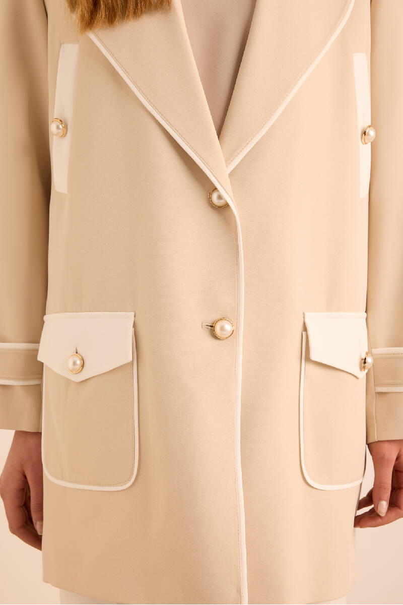 Bej Garnili Cep Detaylı Kap