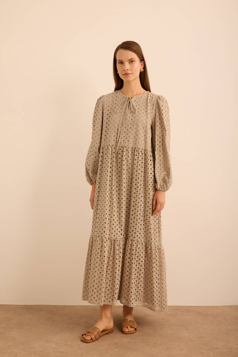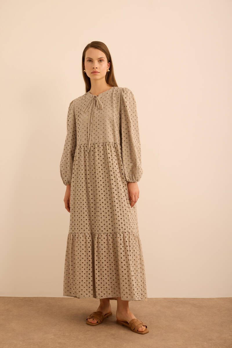 Ekru Kol Ucu Dikiş Detaylı Viscon Tunik
