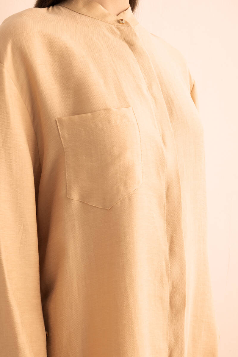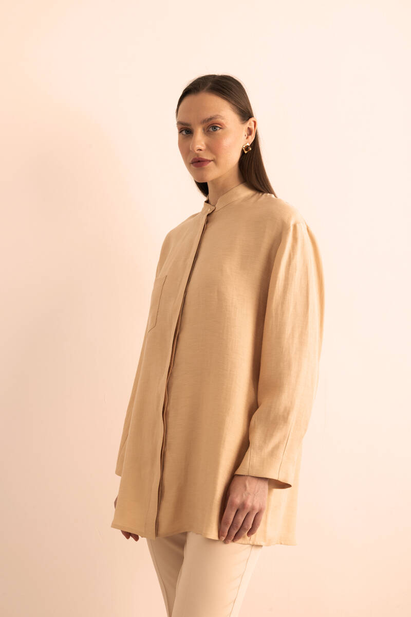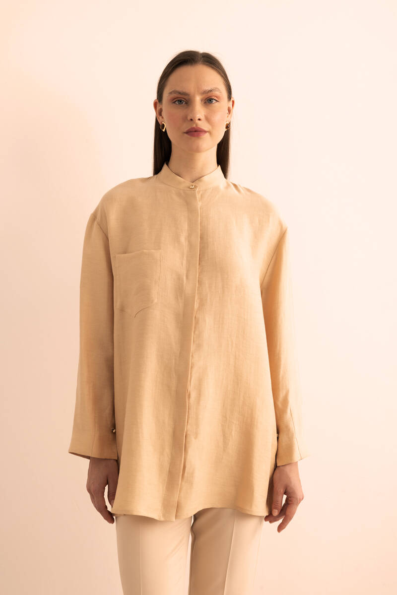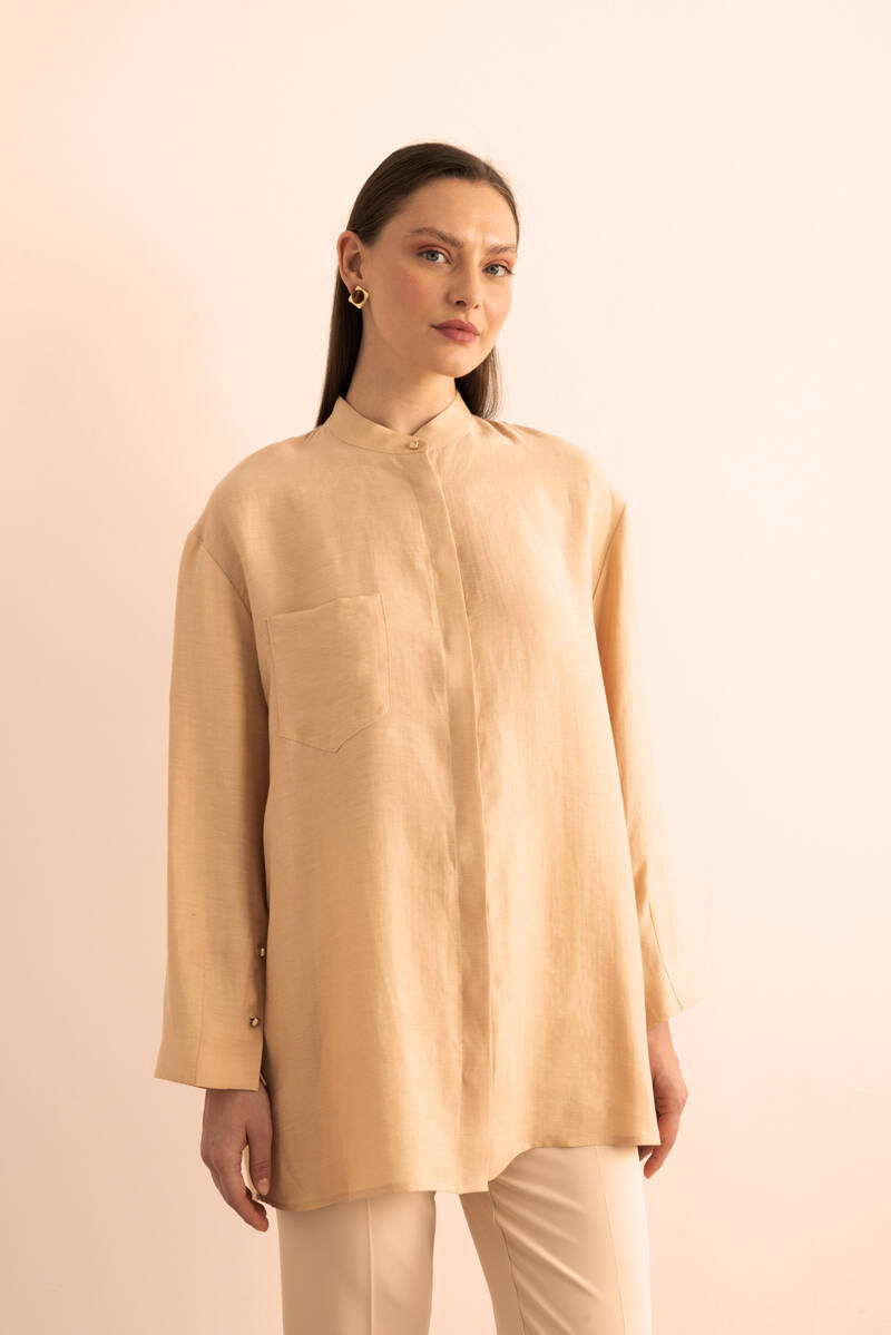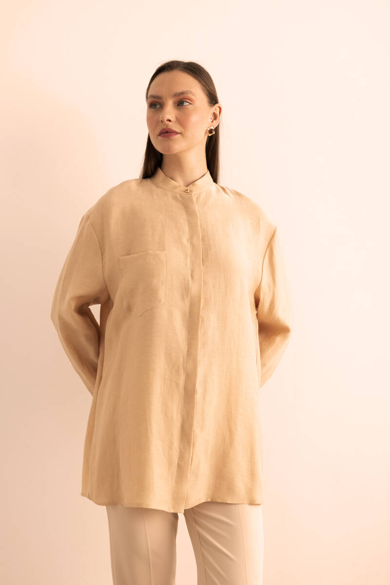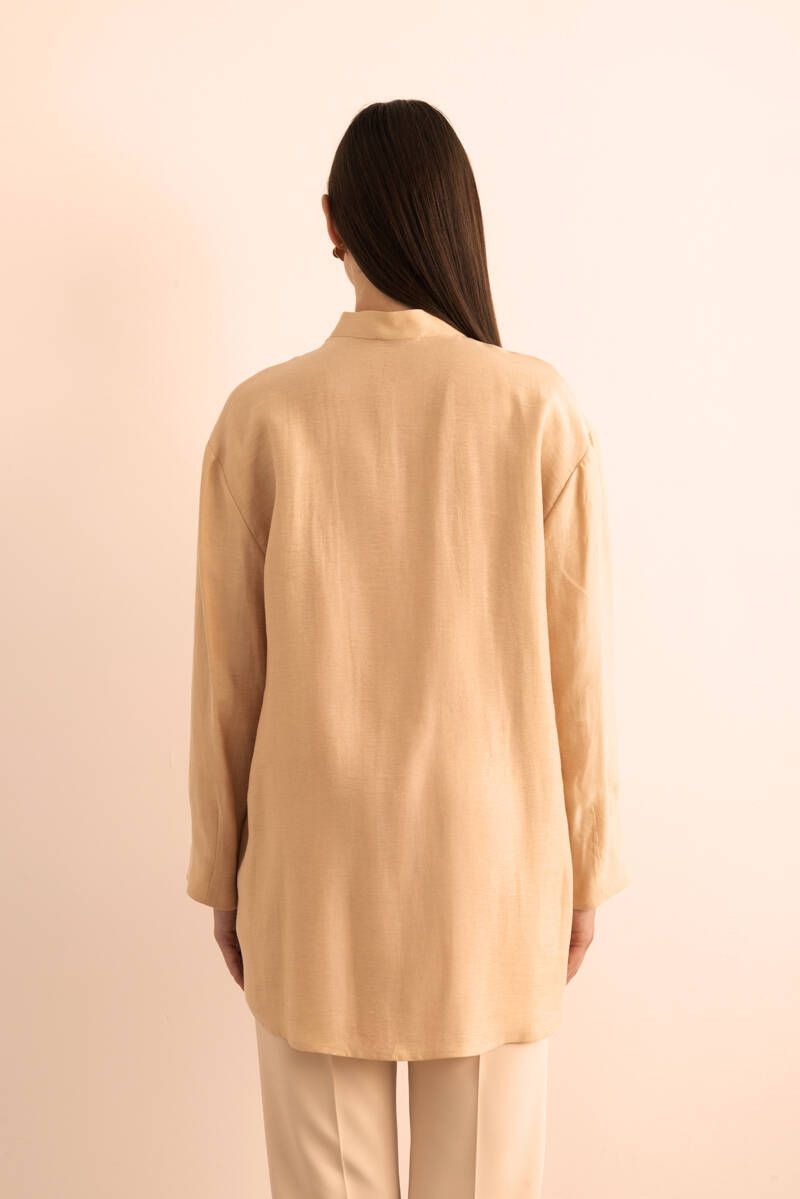 Bej Hakim Yaka Keten Bluz