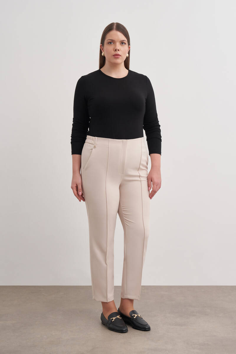 Kahverengi Beli Lastikli Dokuma Pantolon