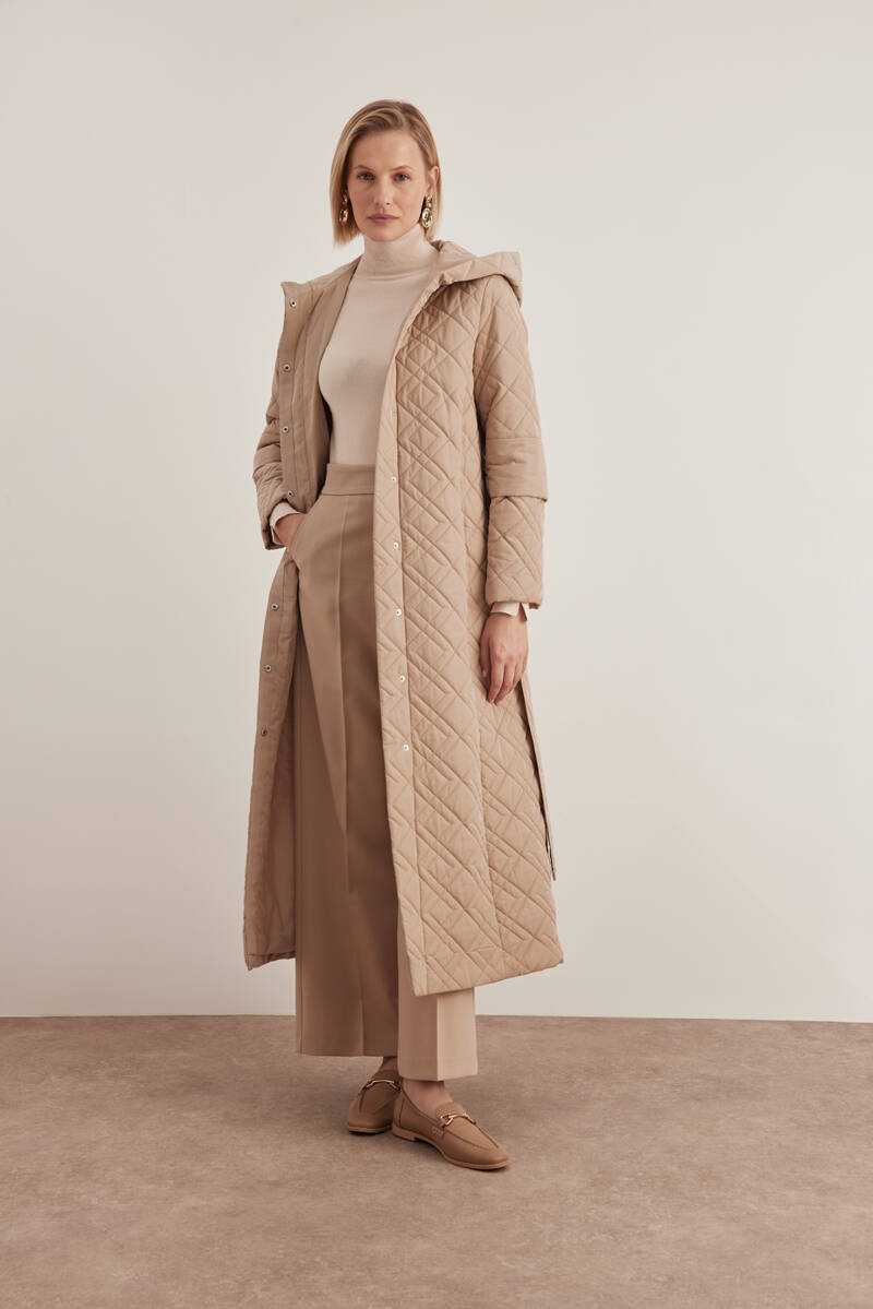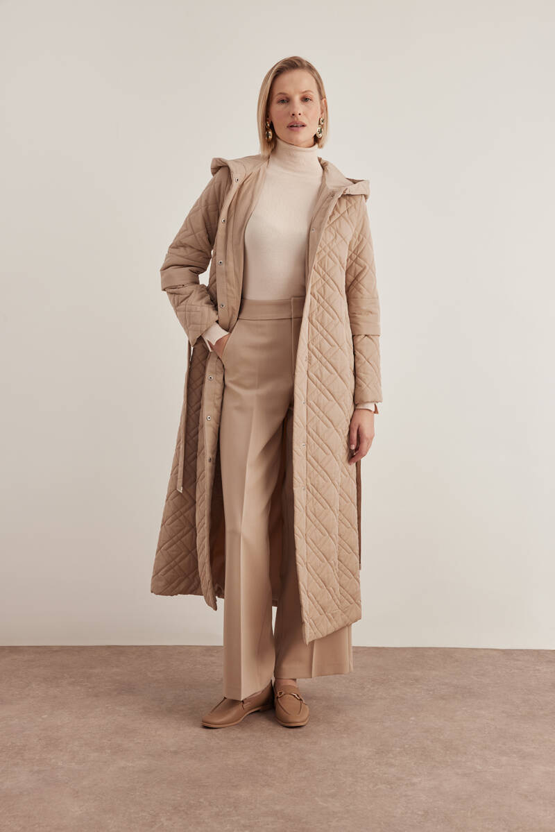 Bej 5829111 Yaka Detaylı Kapitone Kısa Mont