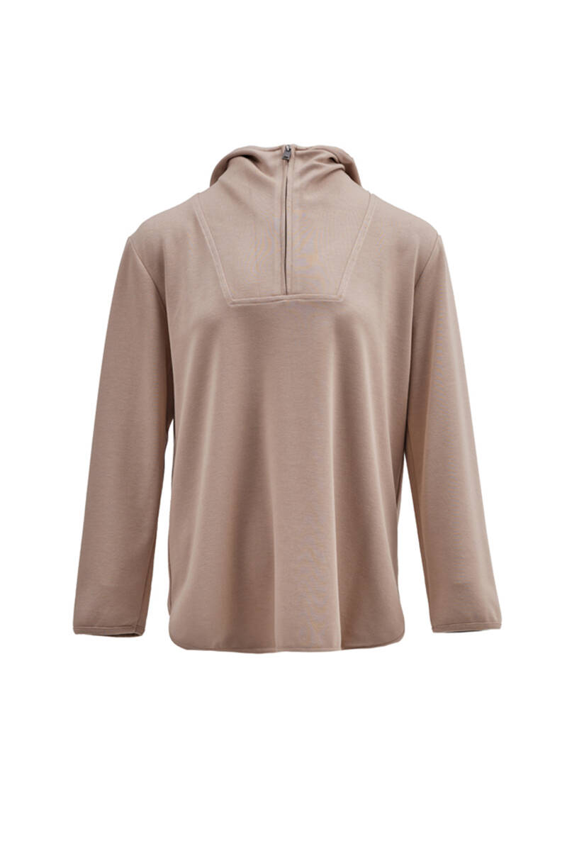 Bej Kup Detaylı Sweatshirt