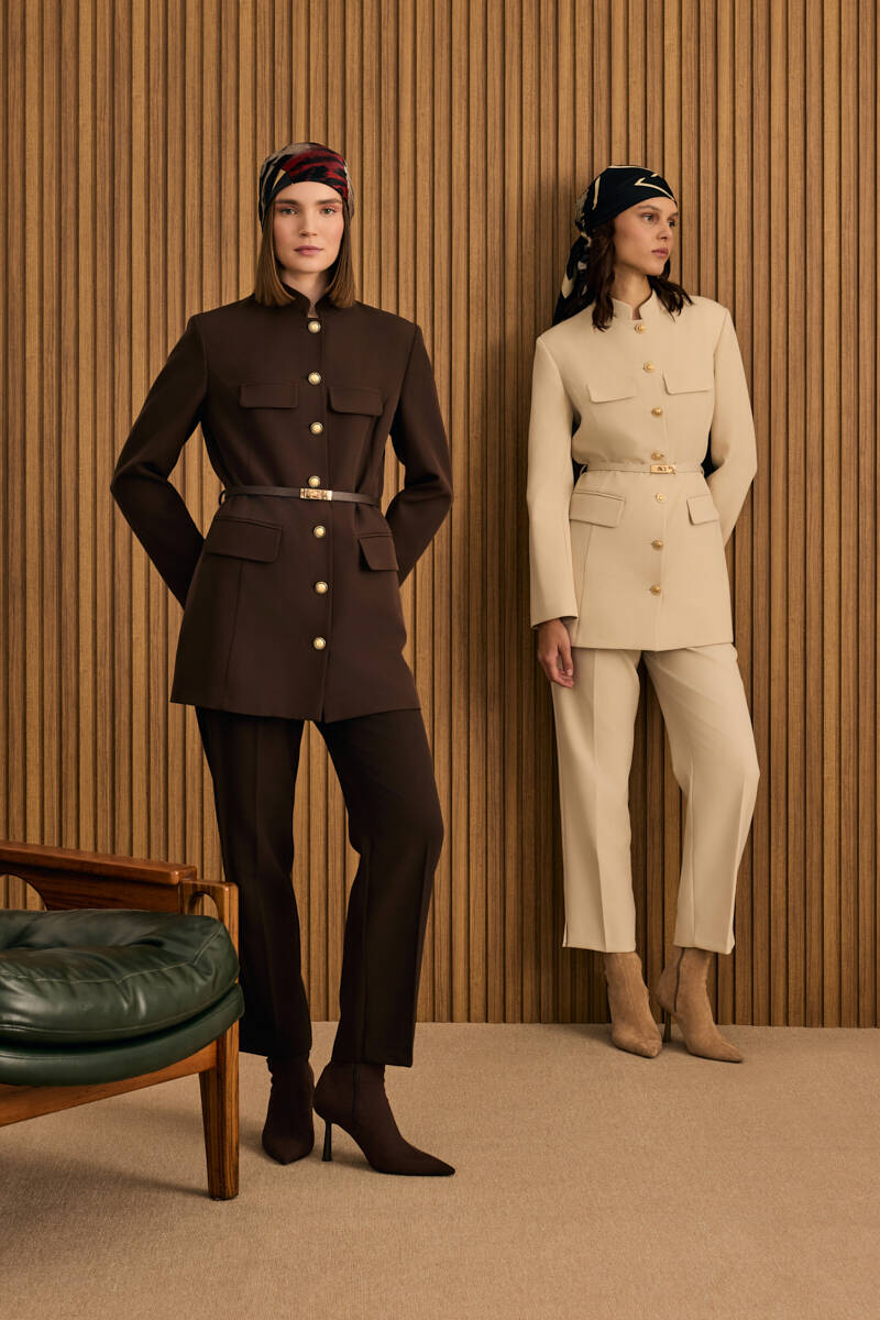 Ekru Sıfır Yaka Metal Düğmeli Şık Ceket