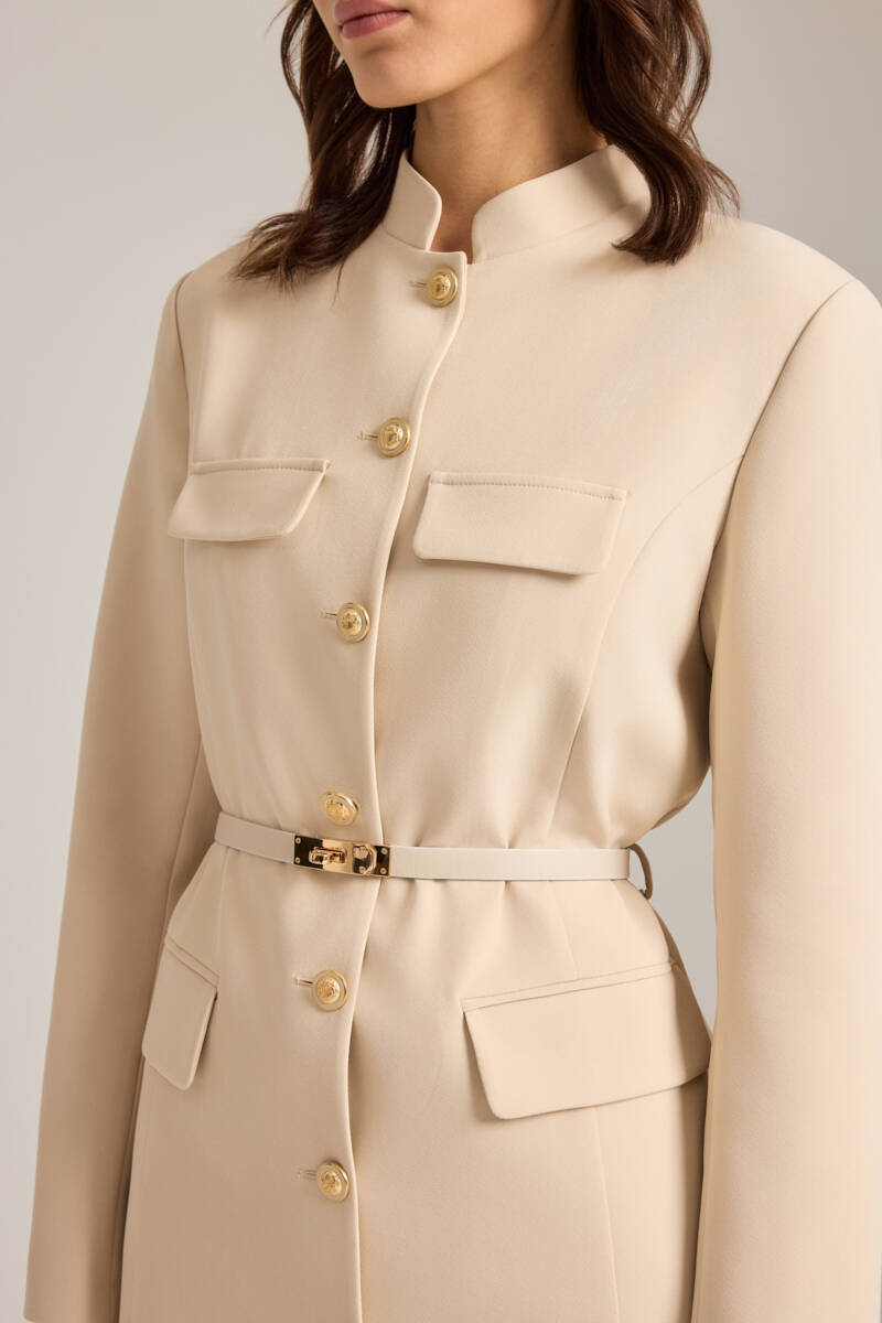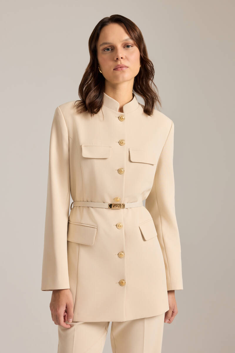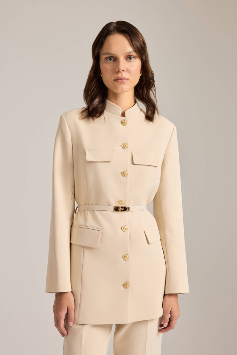 Bej Kemer Aksesuarlı Hakim Yaka Ceket