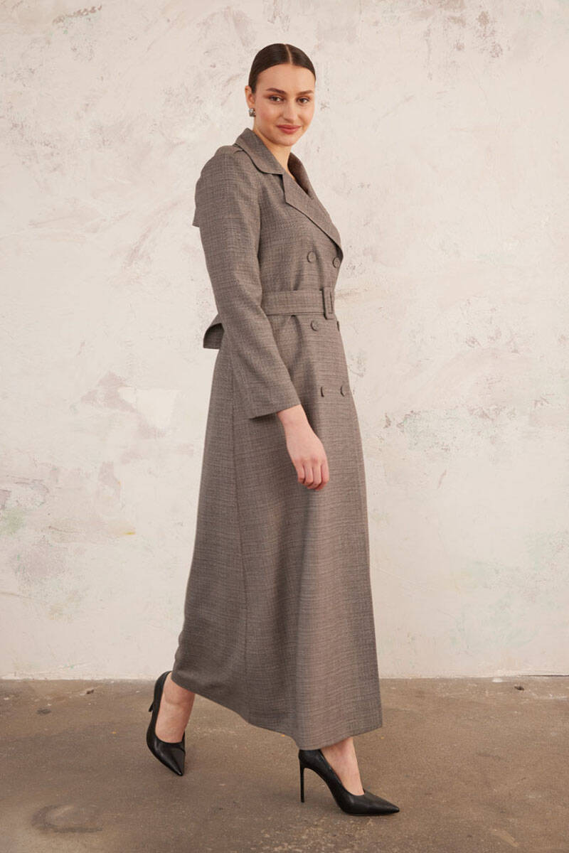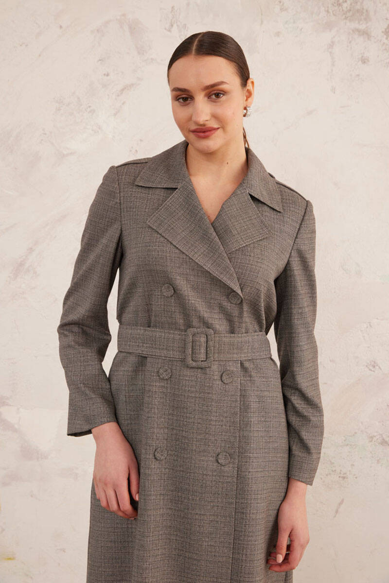 Bej Kruvaze Keten Pardösü